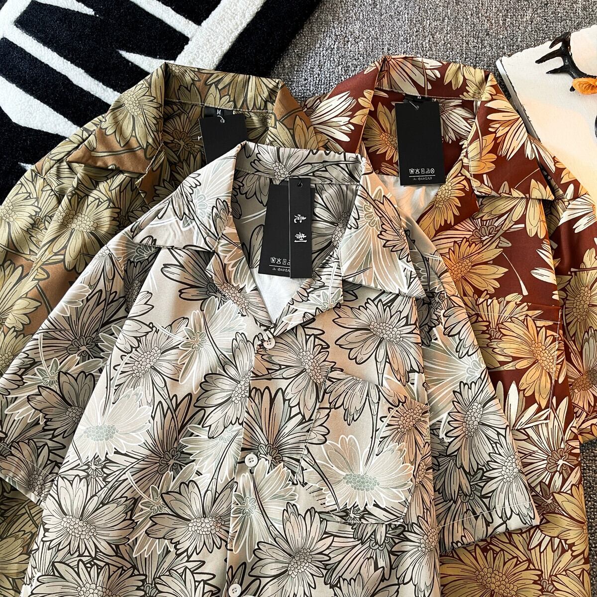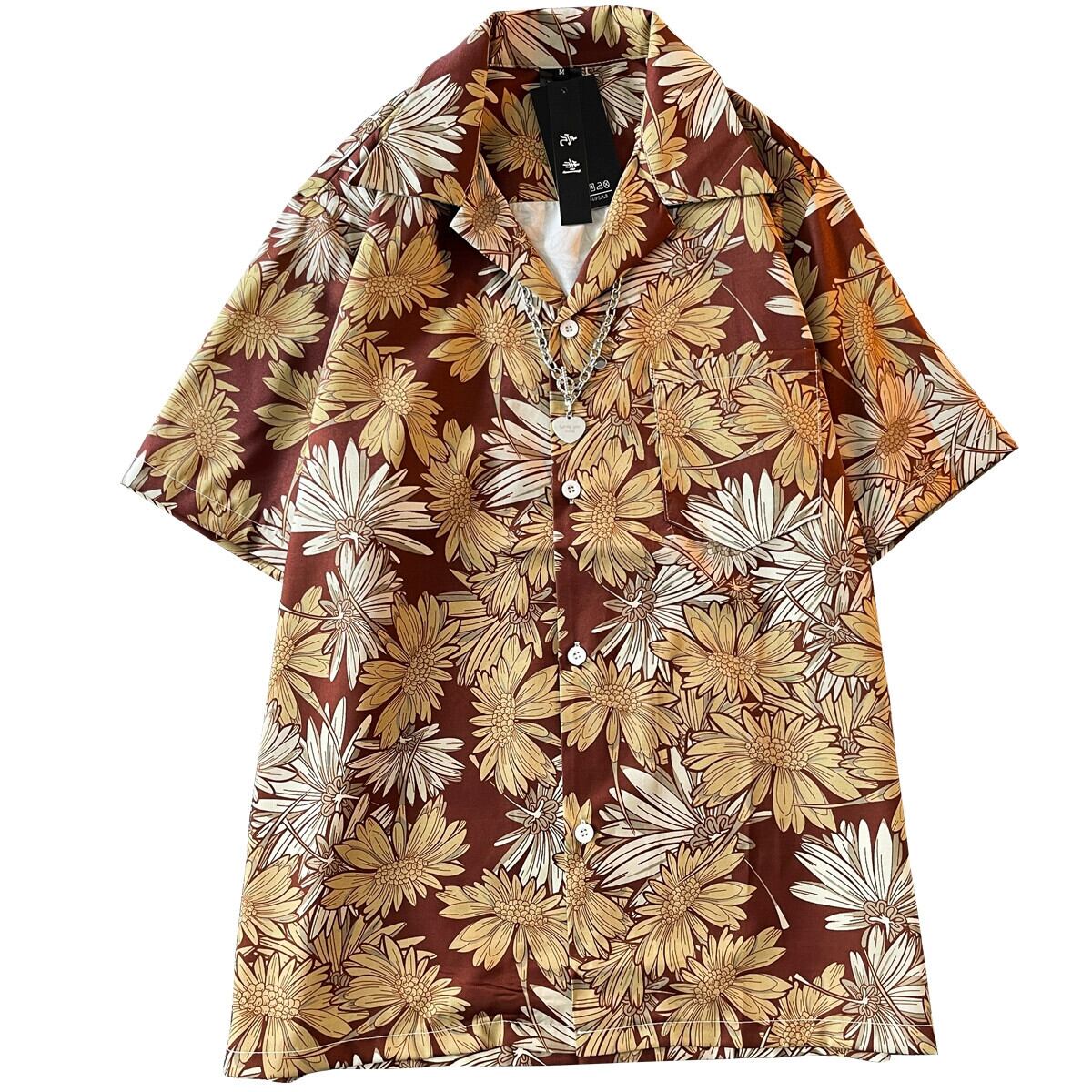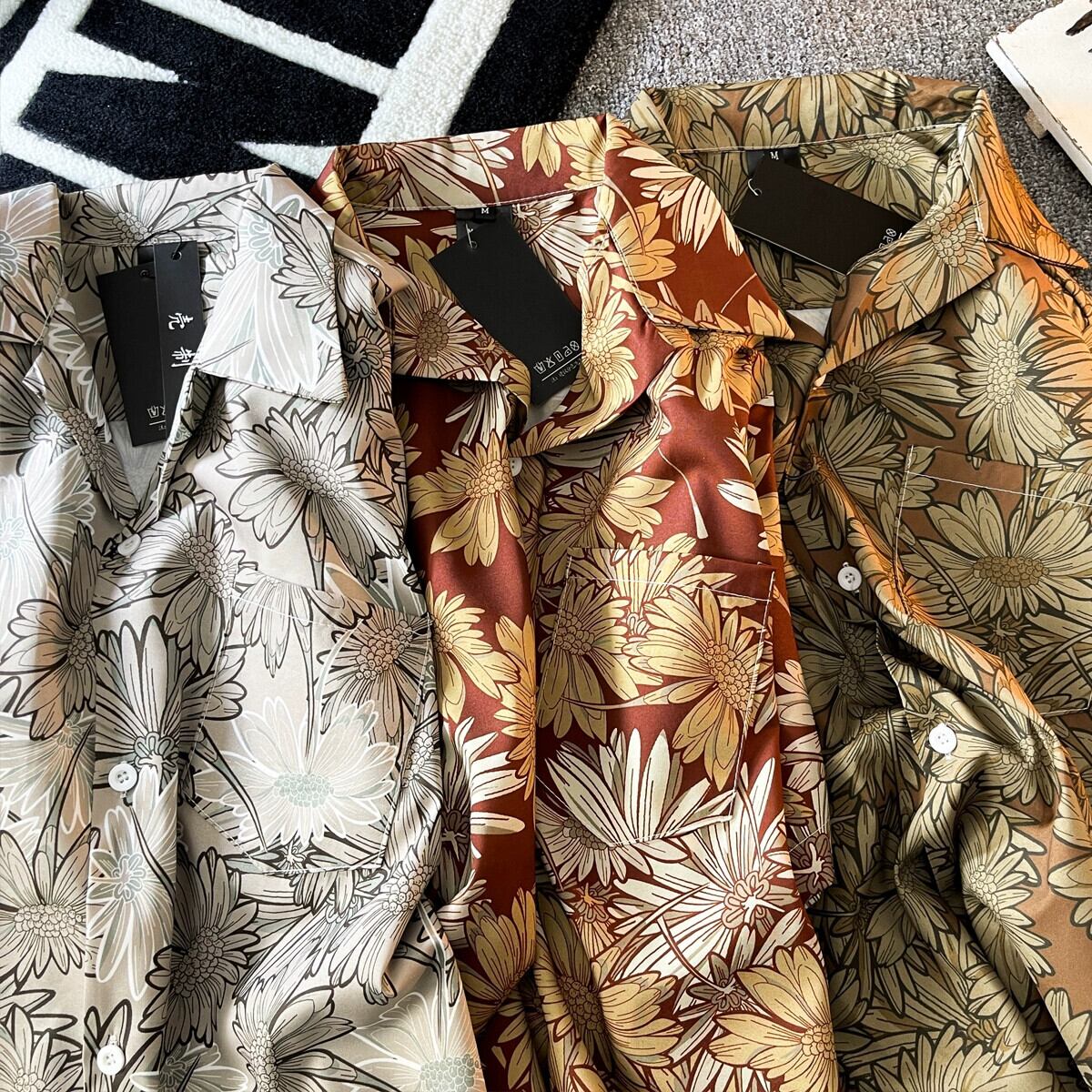 ヴィンテージレトロアロハシャツメンズ夏薄手インアイスシルクルーズ半袖カジュアルビーチフラワーシャツ サマー 夏物 フラワーデザイン ビンテージ 3381964868493516