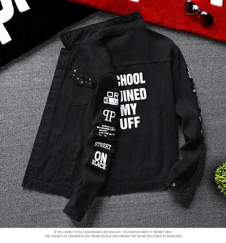 秋の薄いメンズブラックデニムジャケットトレンディなスタイルスリムカジュアルジャケット春と秋のトレンディな野球服 スプリング 春物 オータム 秋物 3381994791668107
