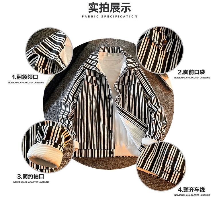 HPCP ストライプ ジャケット メンズ 春と秋 黒と白 シンプル ハイエンド ese ワークウェア ハンサム カジュアル デニム ジャケット メンズ ホワイト ブラック スプリング 春物 オータム 秋物 3381926312741692