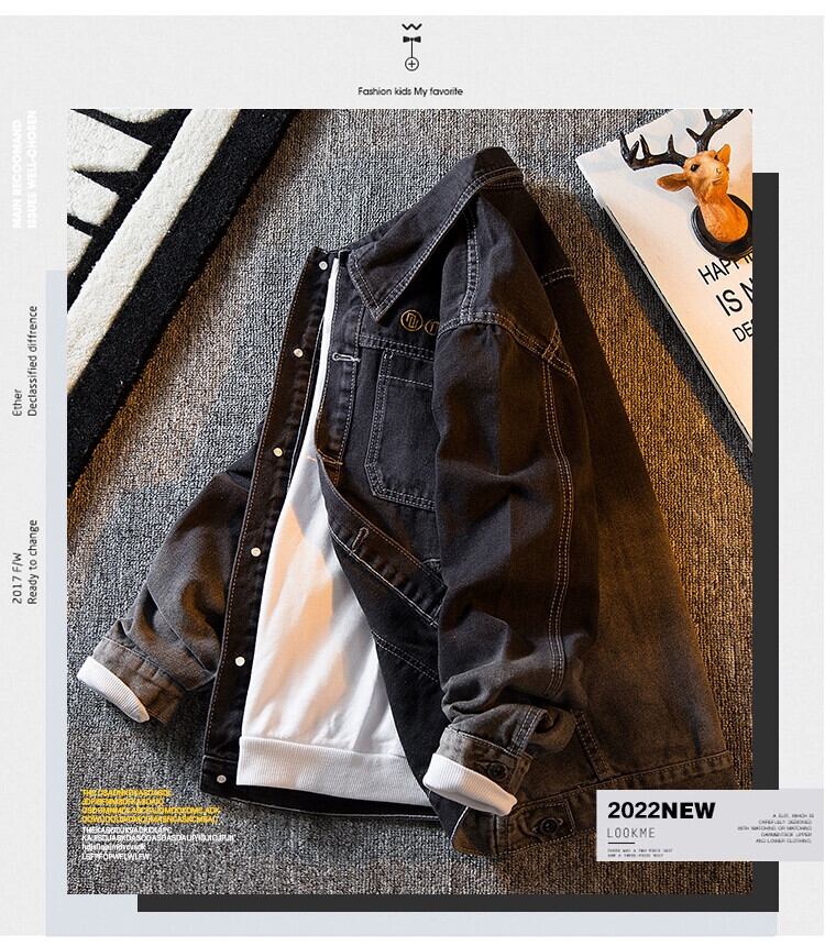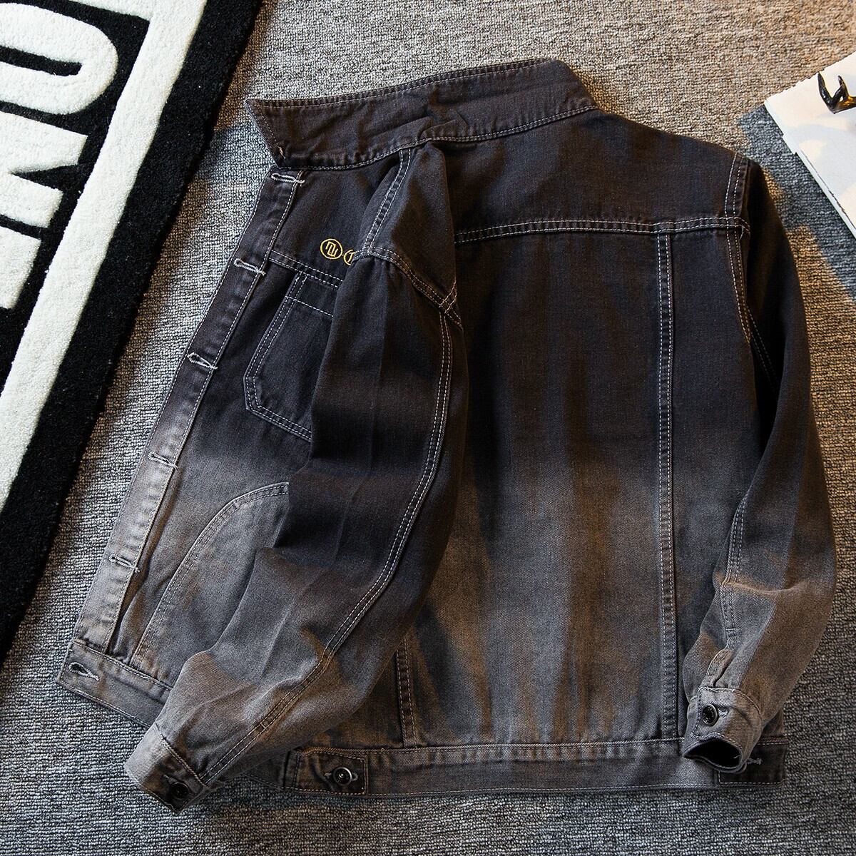 HPCP グラデーションカラー刺繍デニムジャケットメンズ春秋スタイルトレンドイントレンディなブランドワークジャケットデニムトップ レッド スプリング 春物 オータム 秋物 3381988842664565