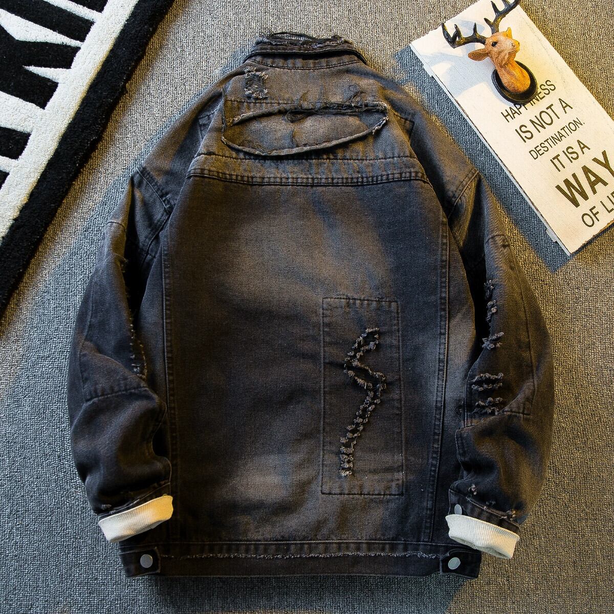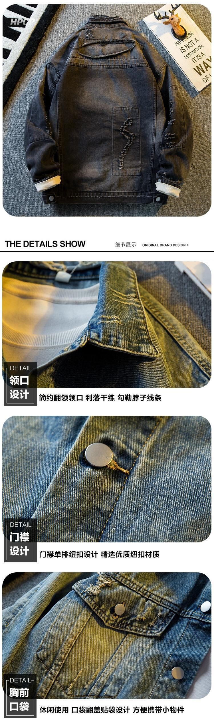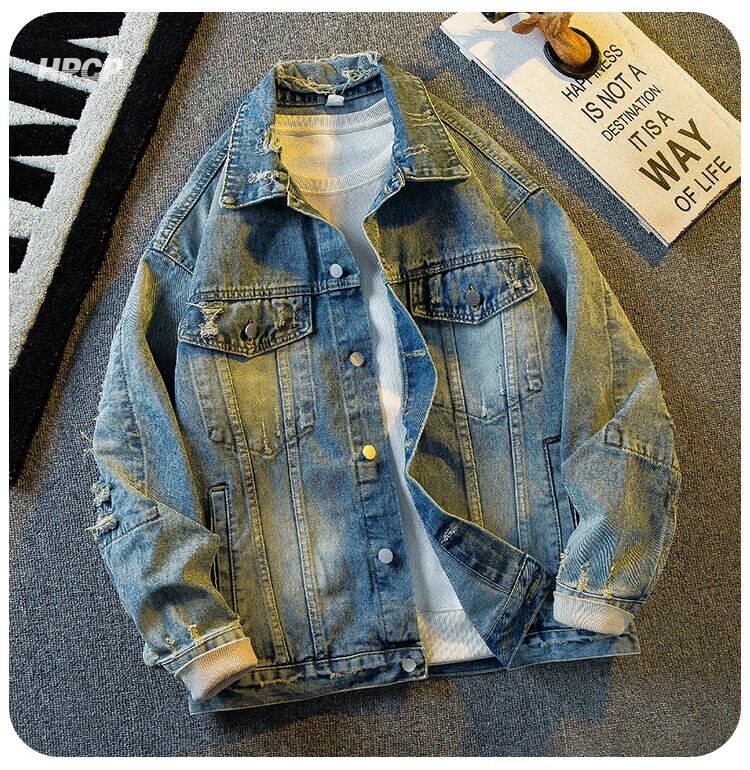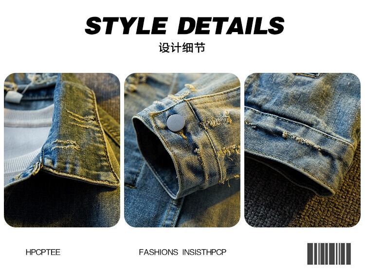 横型アメリカンな雰囲気のレトロなパッチ付きデニムジャケットメンズ春と秋のハイストリートハンサムな破れたダメージラペルジャケット スプリング 春物 オータム 秋物 3381923023294737