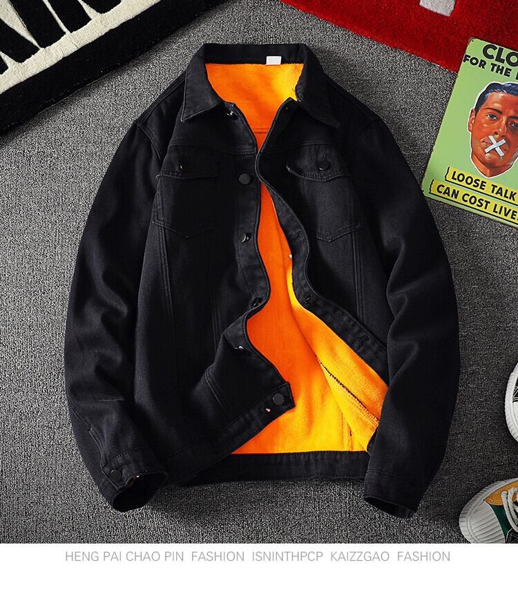 デニムベルベットジャケットメンズ冬厚く暖かい黒カジュアルジャケット秋冬スタイルトレンディなデニム服 ブラック オータム 秋物 ウィンター 冬物 3381939155413524