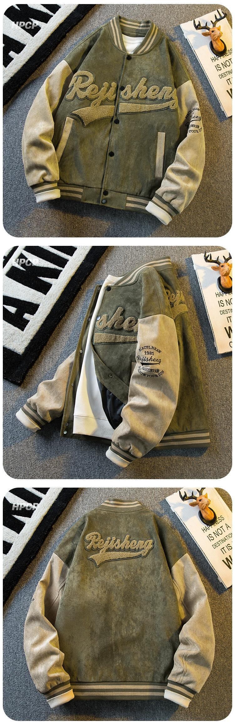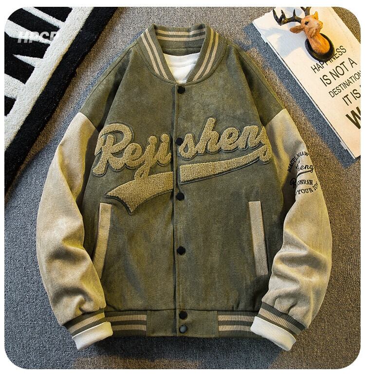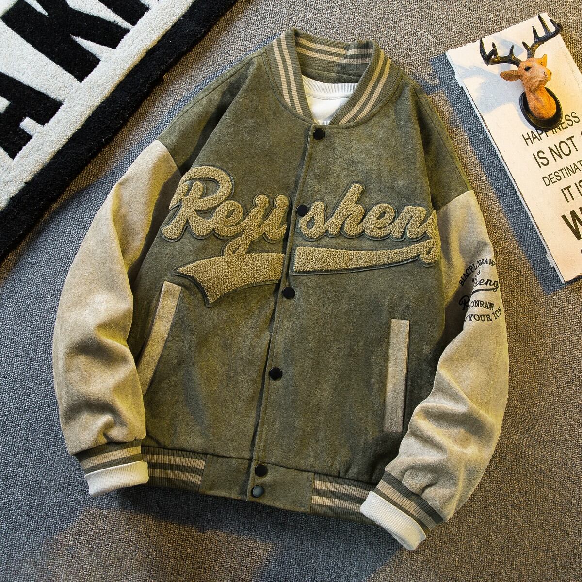 水平 ese ヴィンテージ レトロ スエード ベースボール ジャケット メンズ 春と秋のアメリカン ショート ボンバー ジャケット スウェード スプリング 春物 オータム 秋物 ビンテージ 3381931206581050