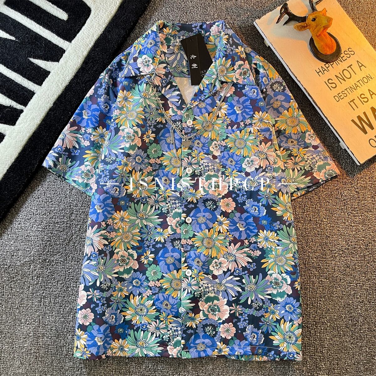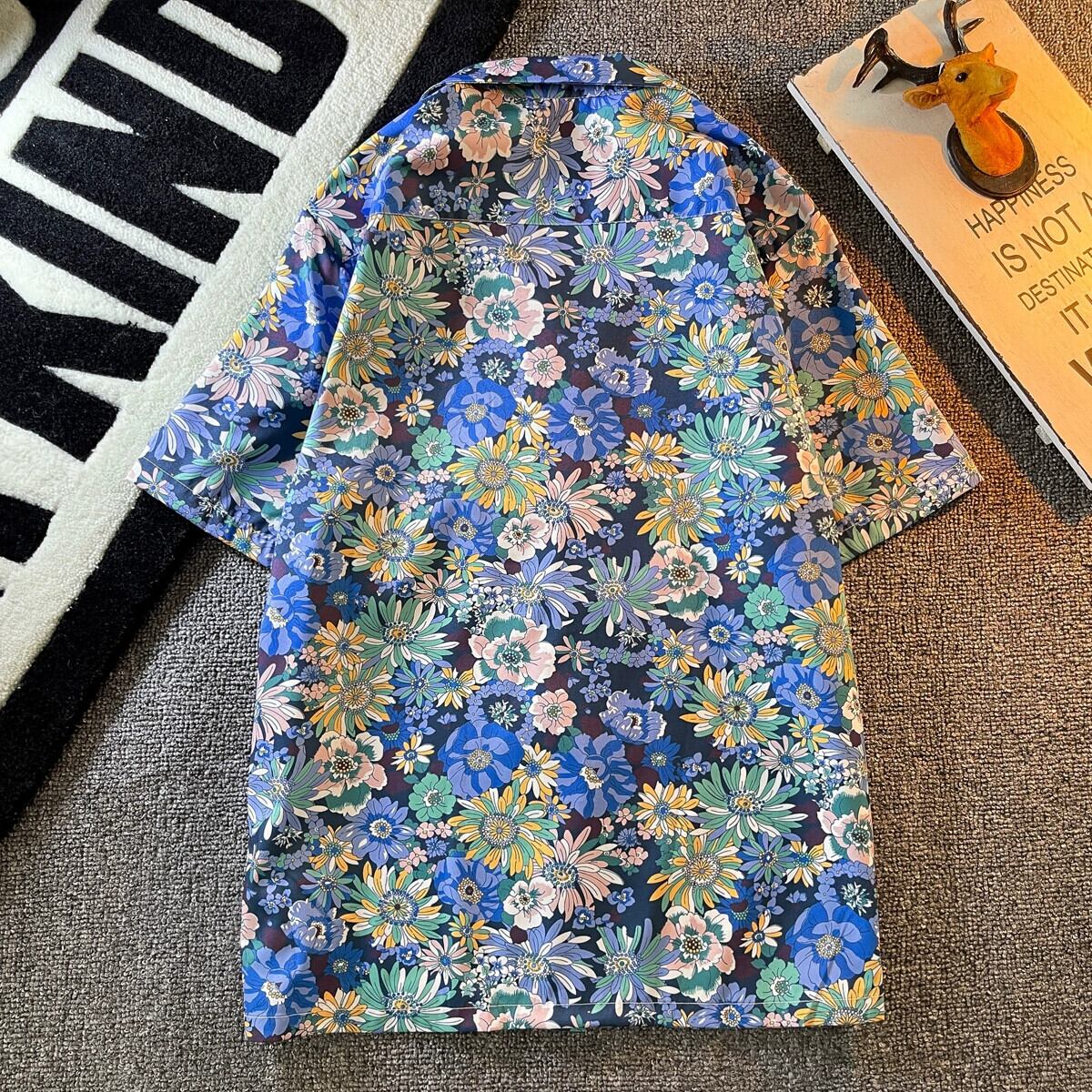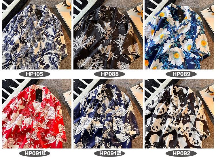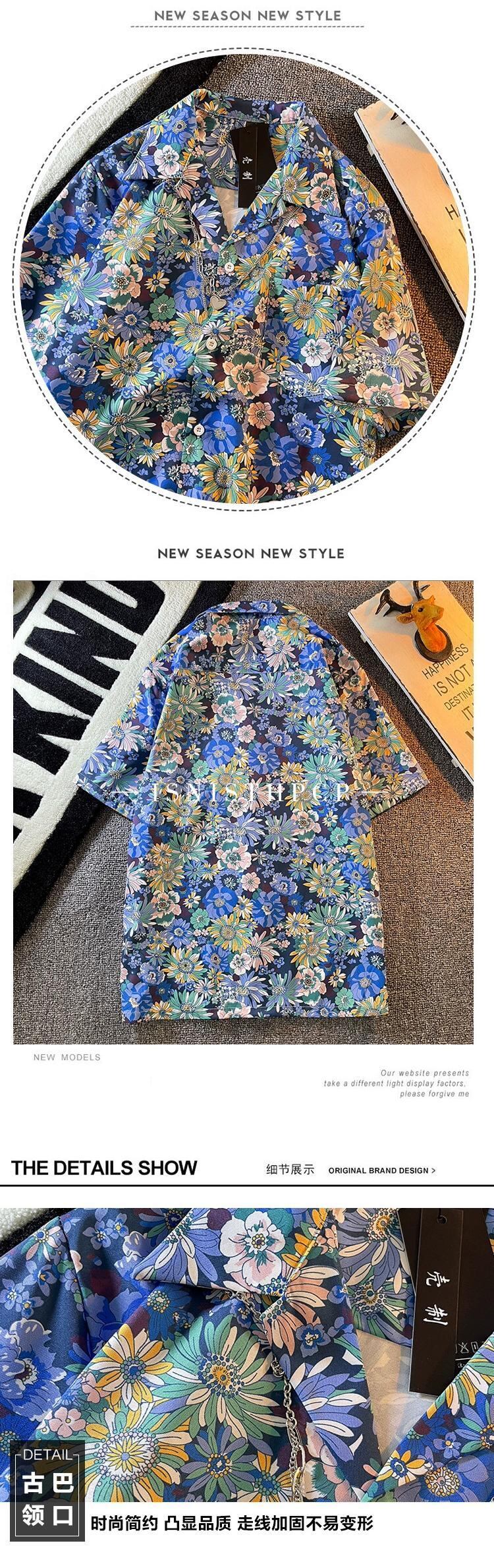 花柄半袖シャツメンズINSレトロハンサムサマーファッションブランドルーズハワイアンキューバンカラーシャツ花柄半袖D 夏物 3381952300702592