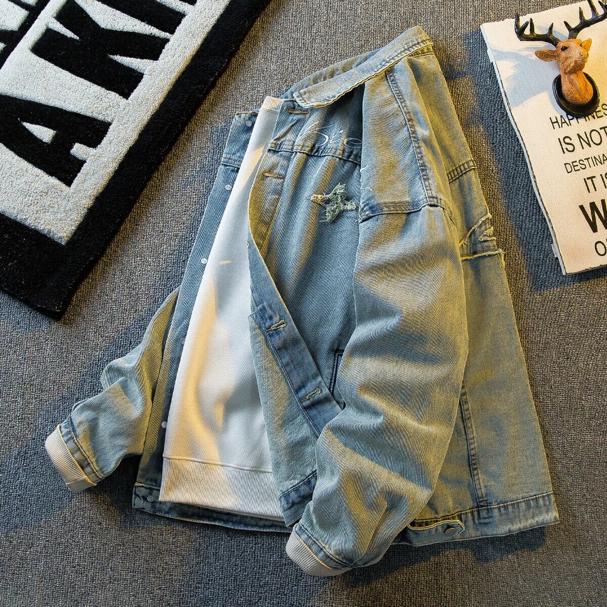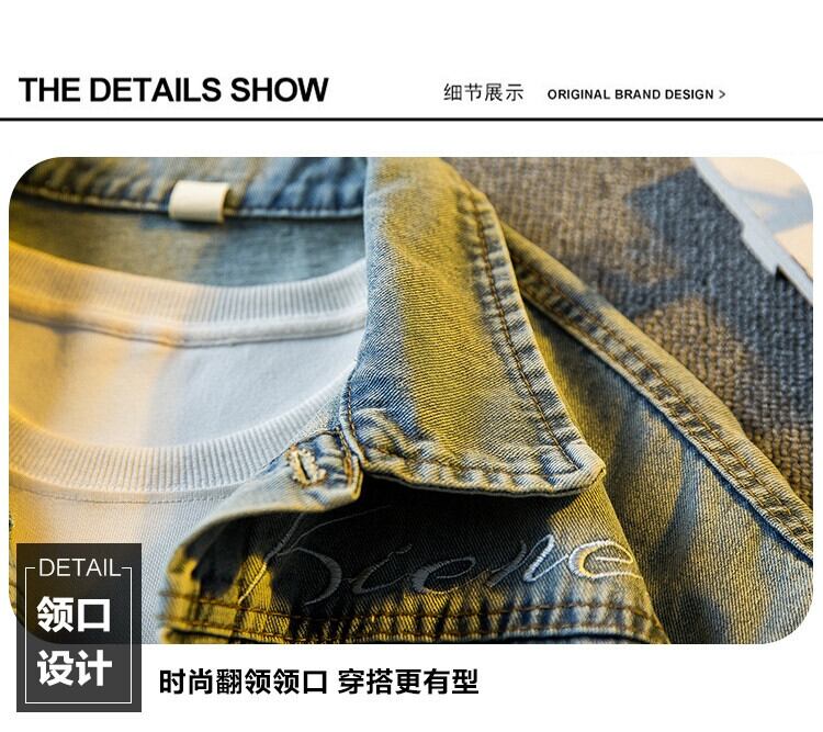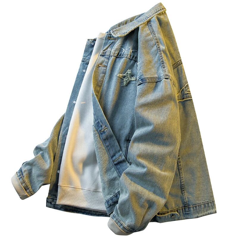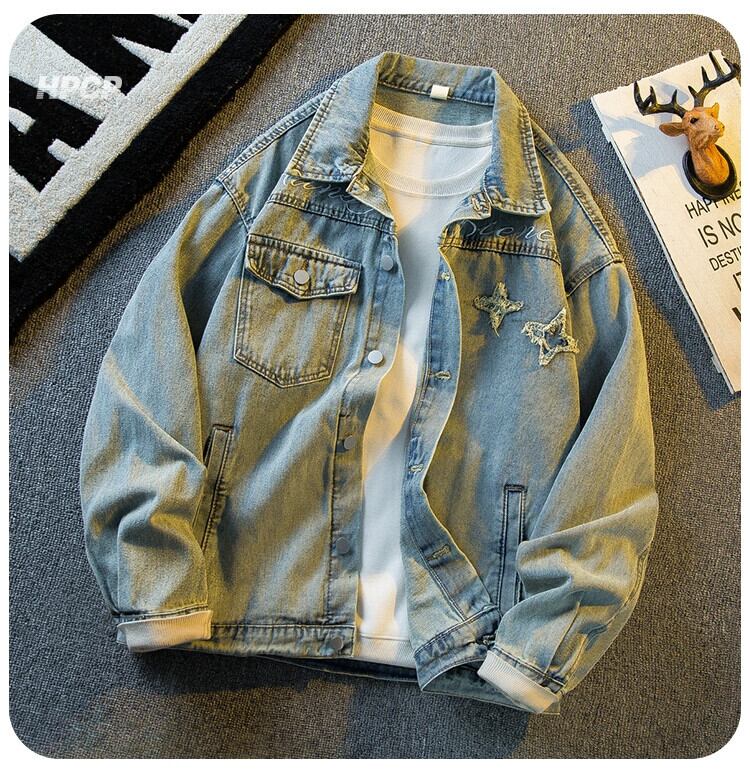 Hengpai 国民ファッションパッチ刺繍デザインデニムジャケットメンズ春のファッションブランドハイストリートハンサムラペルカジュアルジャケット スプリング 春物 3381964523732384