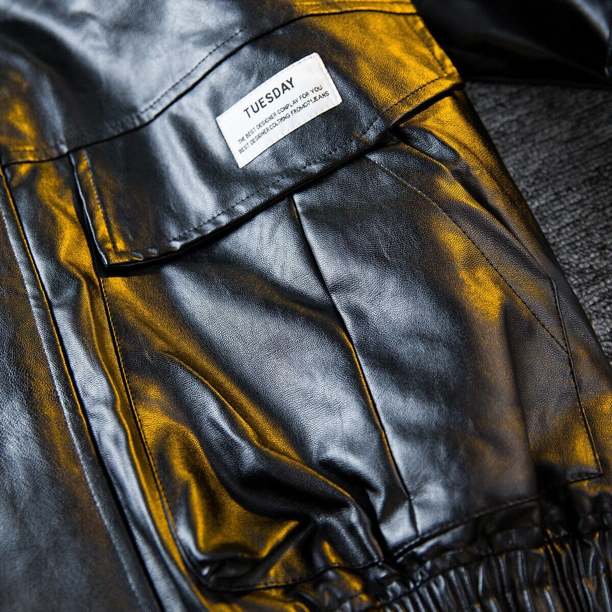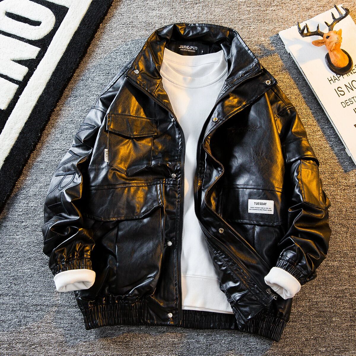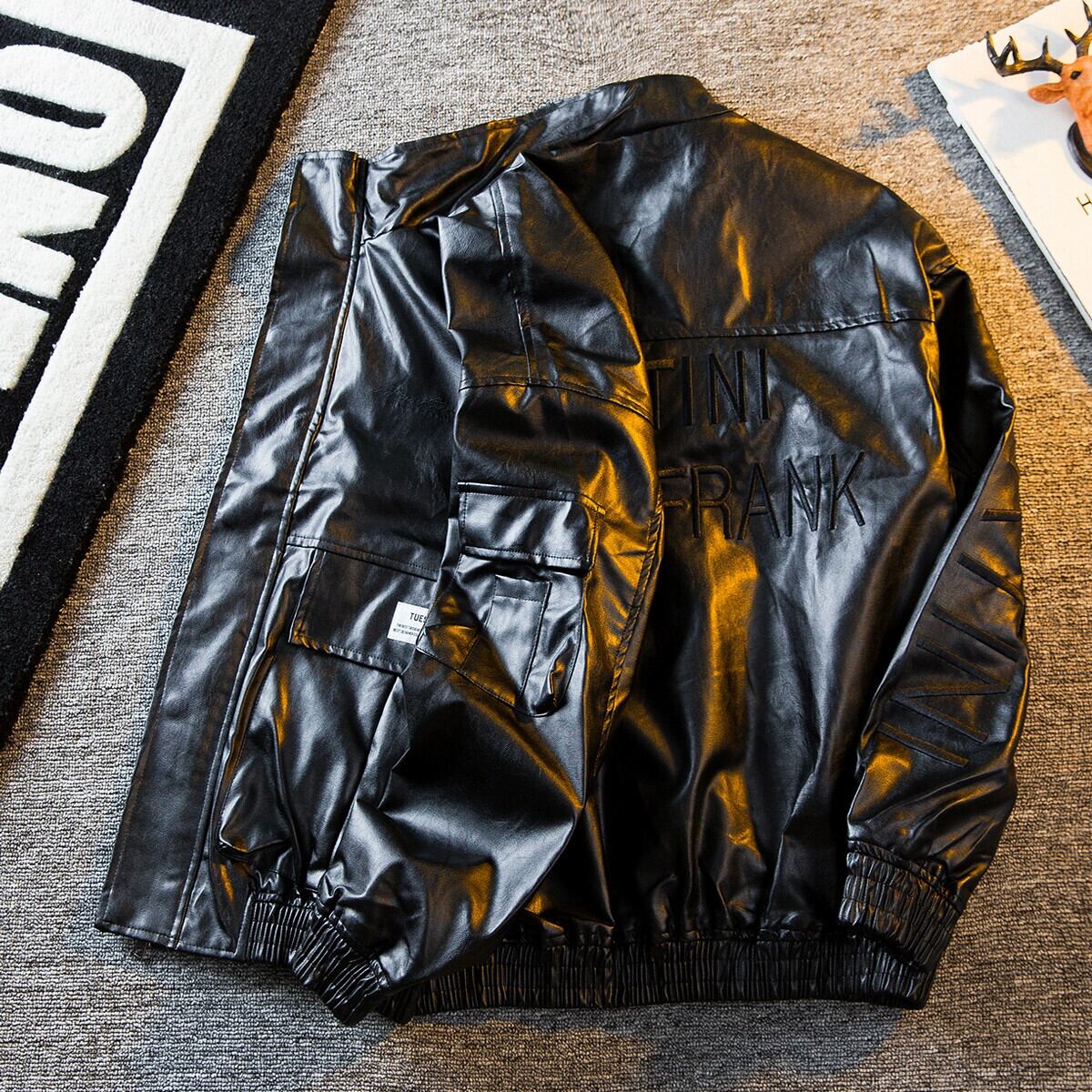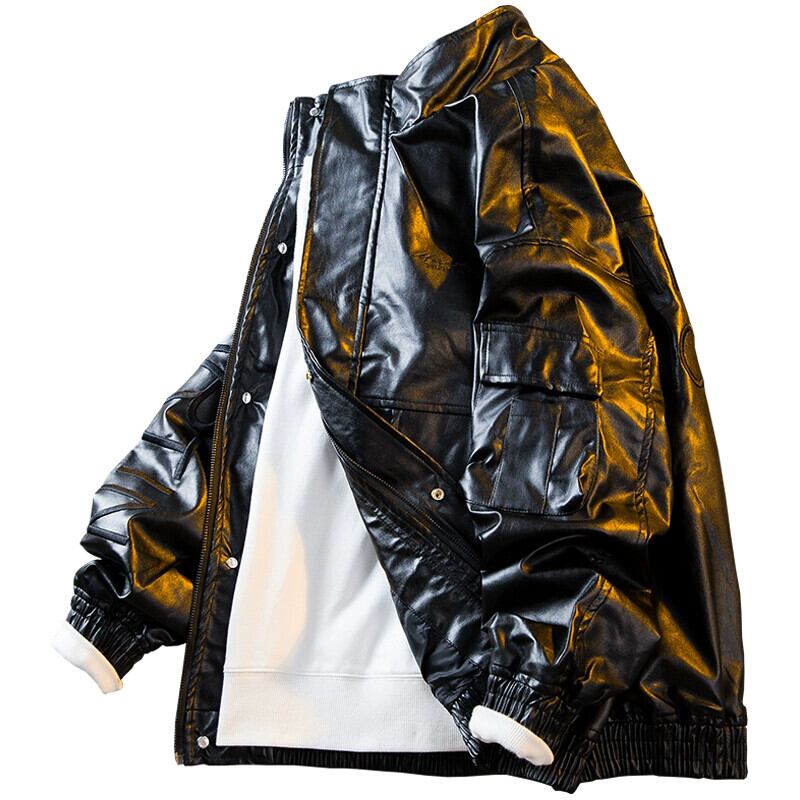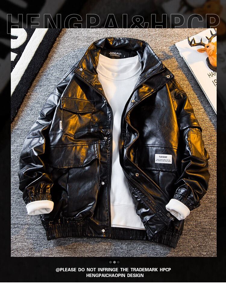 HPCP ワークウェア機能風スタンドカラーレザージャケットメンズハンサムストリートハイエンド刺繍オートバイレザージャケットメンズ レッド 3381990256782851