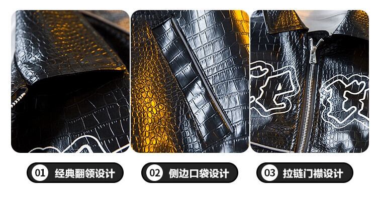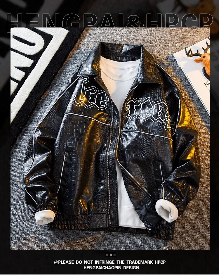 HPCP ワニ柄レザージャケットメンズハイストリートイントレンド春と秋のハイエンドレトロハンサムボーイオートバイジャケットジャケット スプリング 春物 オータム 秋物 3381950683530880
