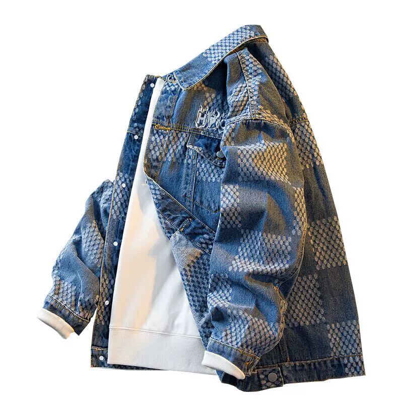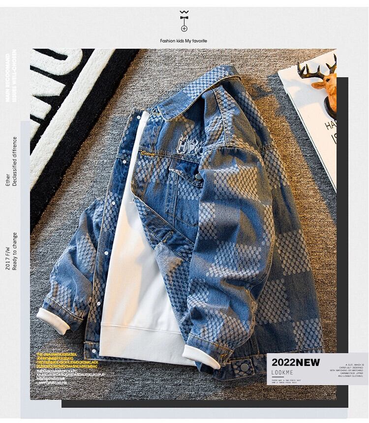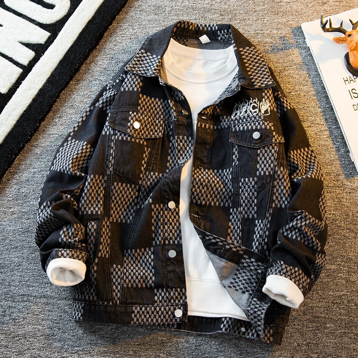 HPCP ヘビー刺繍チェック柄デニムジャケットメンズ秋トレンディブランドメンズハイエンドハンサムジャケットカジュアルトップ レッド オータム 秋物 3381967582160427