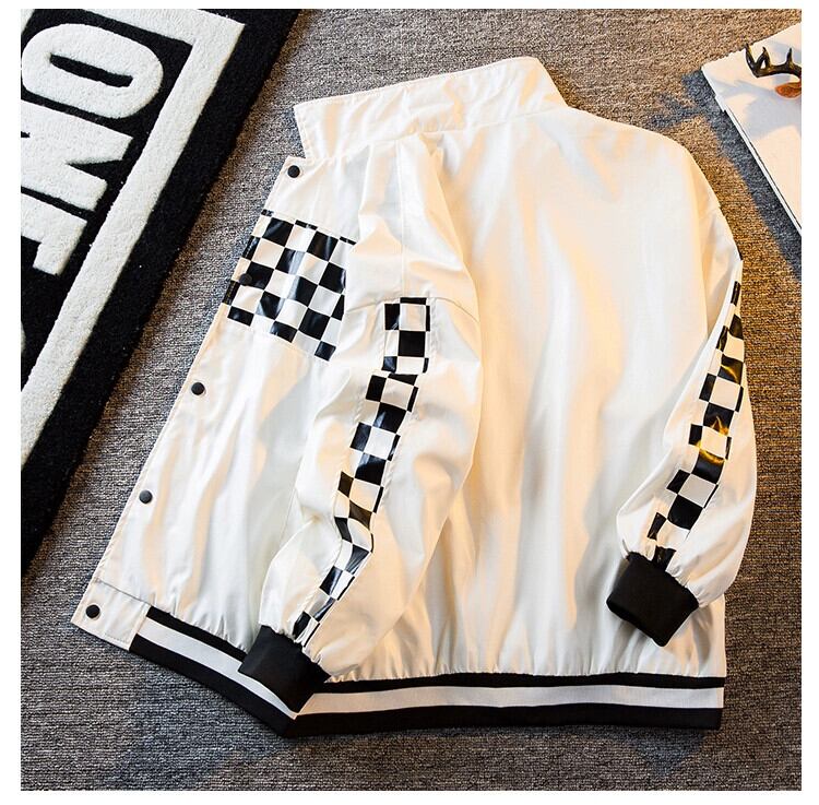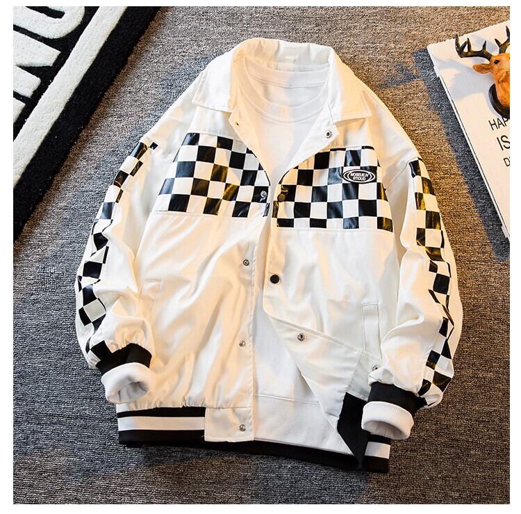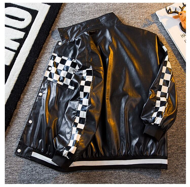 HPCP アメリカン雰囲気チェッカーボードステッチレザージャケットメンズ野球ユニムトレンディなハイストリートハンサムオートバイジャケットジャケット男性 3381965214601772