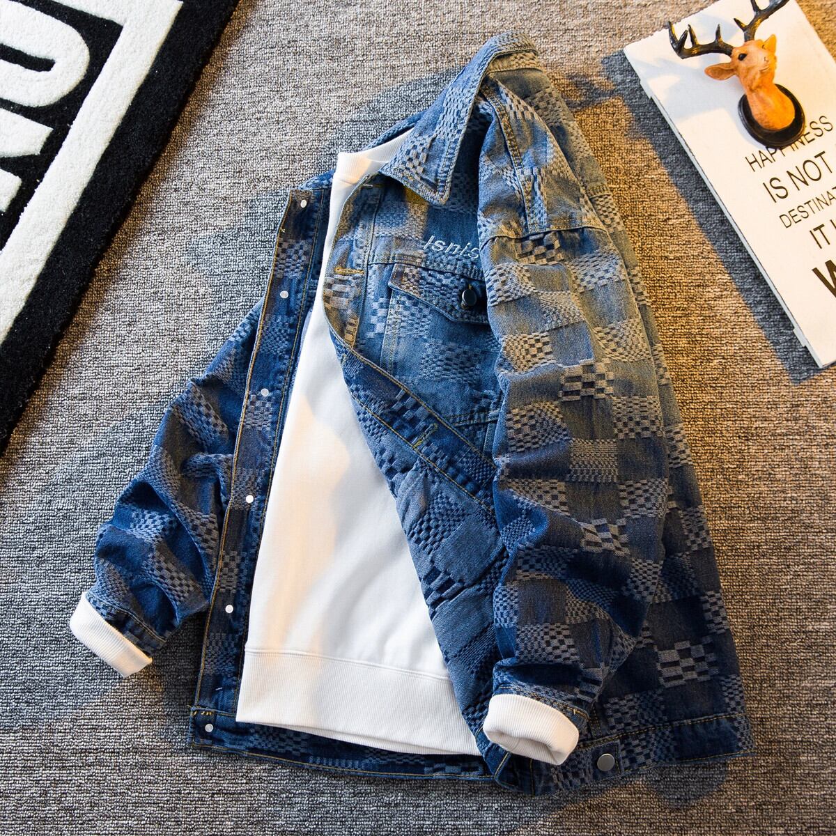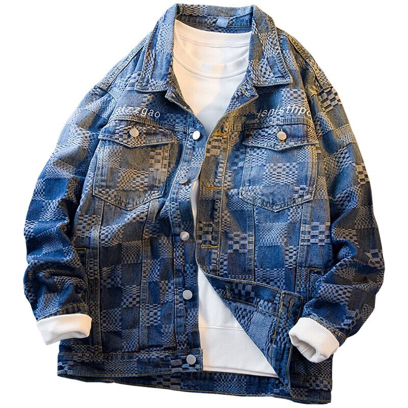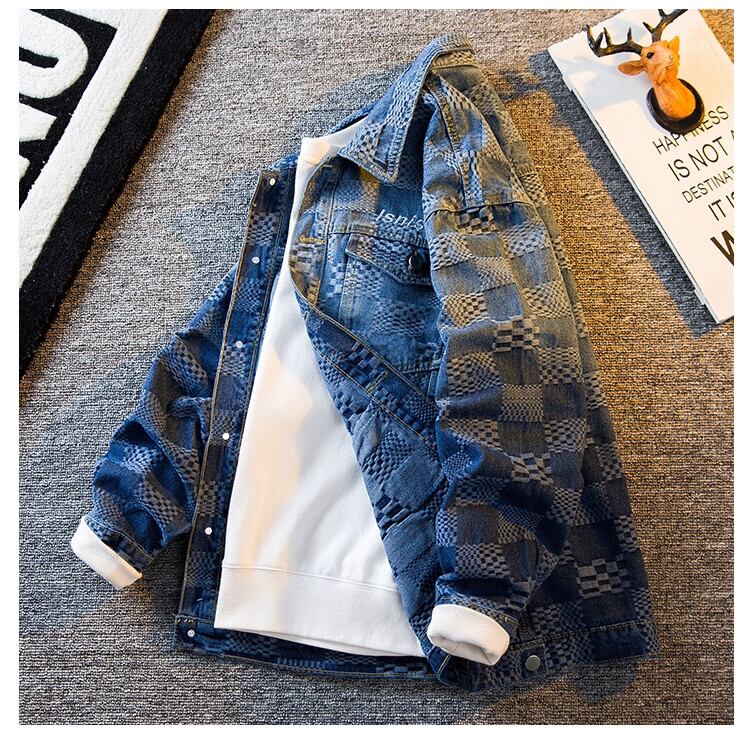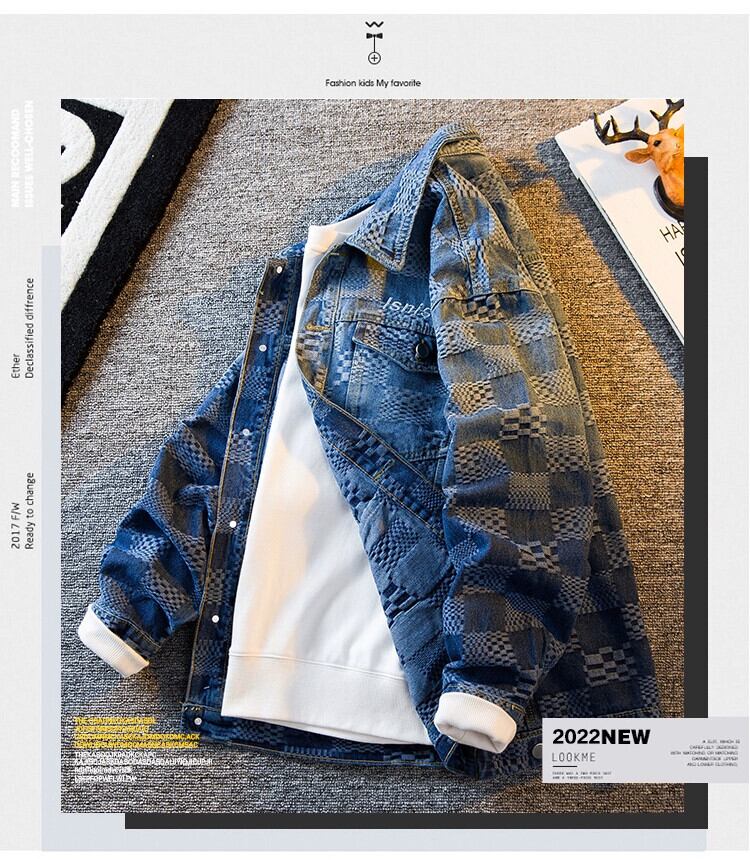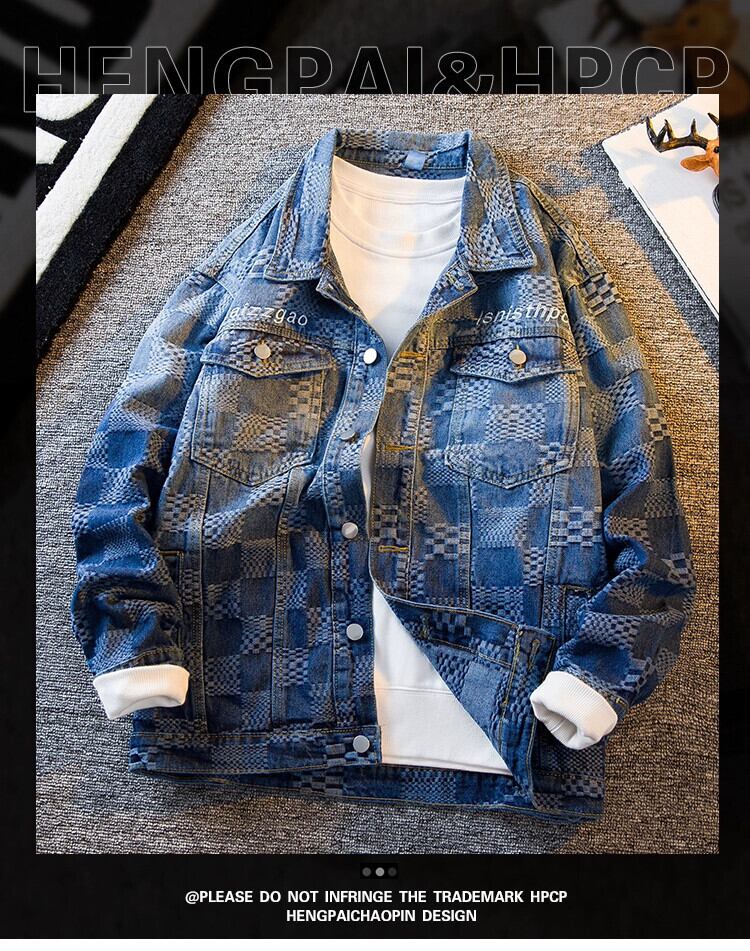 HPCP グラデーションカラー刺繍チェック柄デニムジャケットメンズイントレンディブランド文字ハイエンドカジュアルジャケットデニムジャケット レッド 3381939113715345