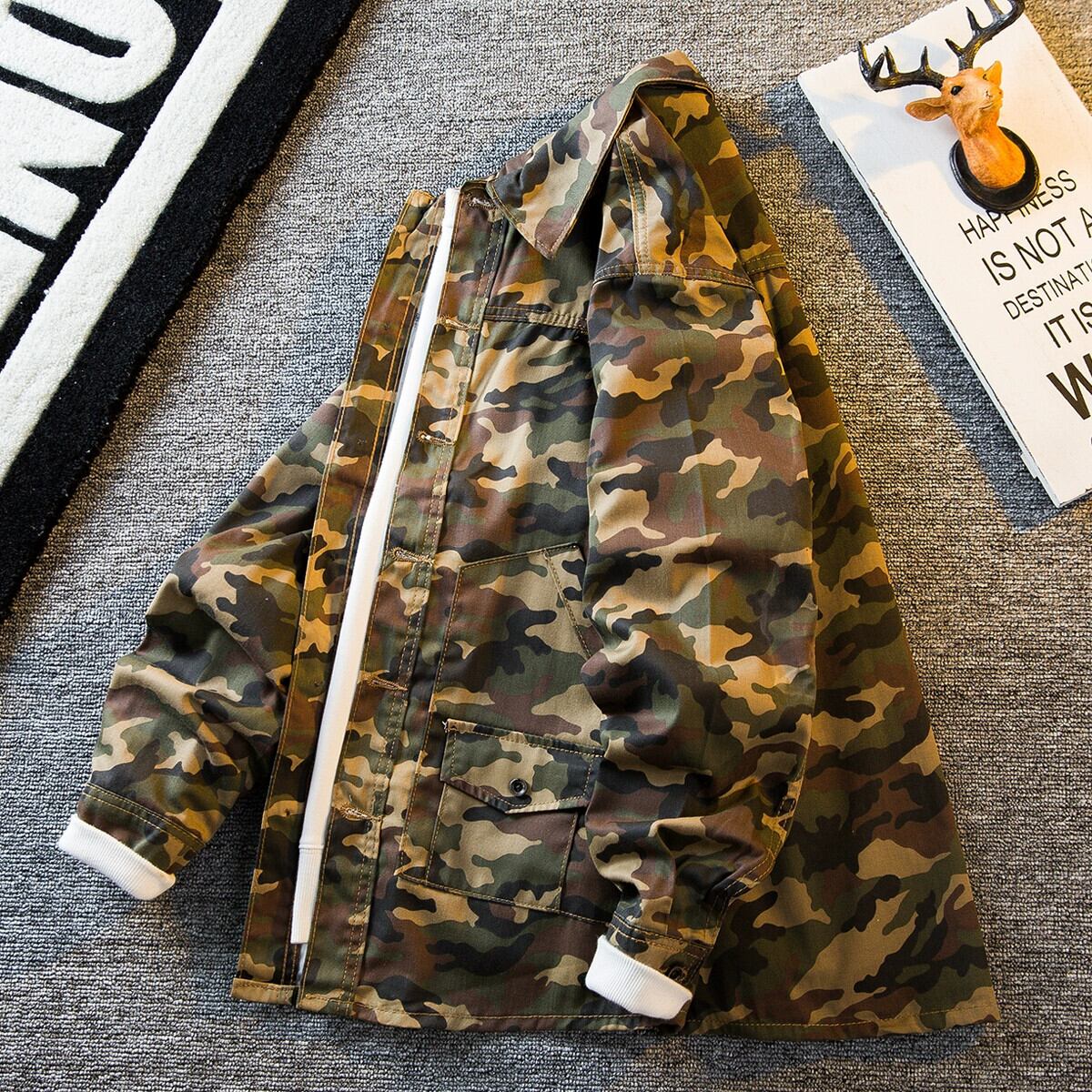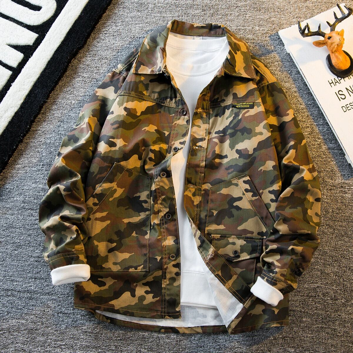 HPCP ミリタリースタイル迷彩ジャケットメンズ春と秋のトレンディなブランドインハンサムメンズプリントカジュアルデニムジャケット男性 スプリング 春物 オータム 秋物 3381985492070754