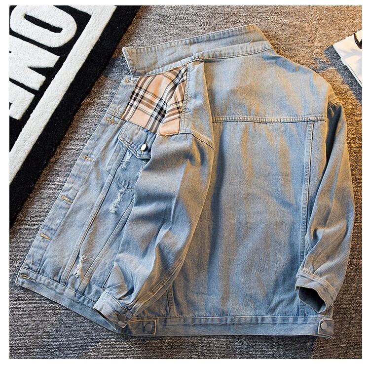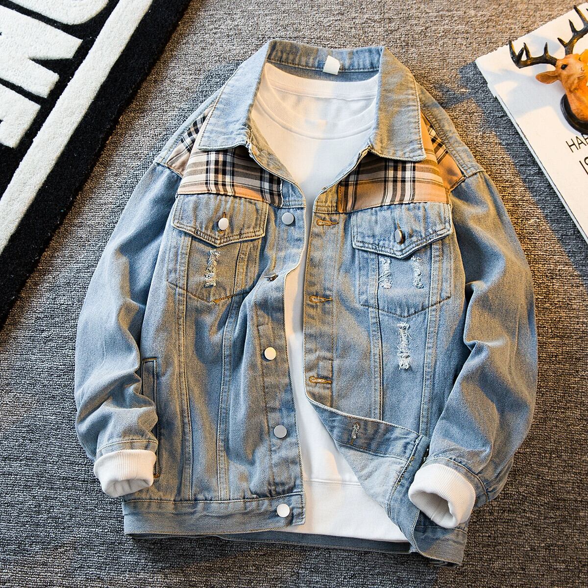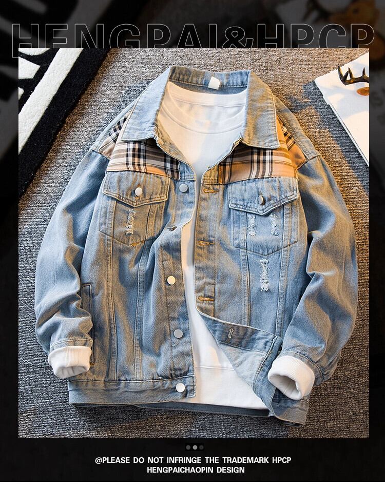 HPCP チェック柄スプライシングデニムジャケットメンズ春と秋の香港スタイルイントレンドルーズでハンサムなトレンディなブランドカジュアルジャケットメンズ スプリング 春物 オータム 秋物 3381926121823837