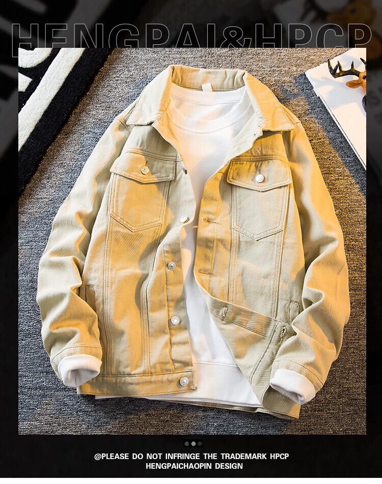 HPCP カーキ デニム ジャケット メンズ 春秋のトレンド ブランド バージョン トレンド 多用途 メンズ 刺繍 カジュアル ジャケット トレンド レッド スプリング 春物 オータム 秋物 3381982144105974