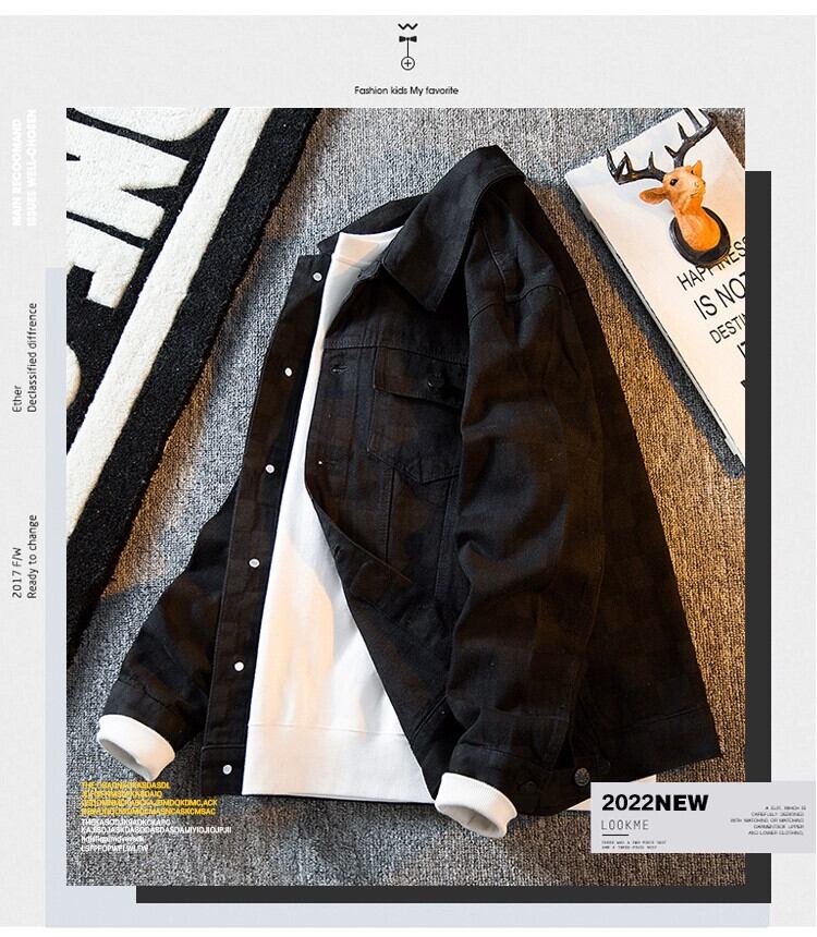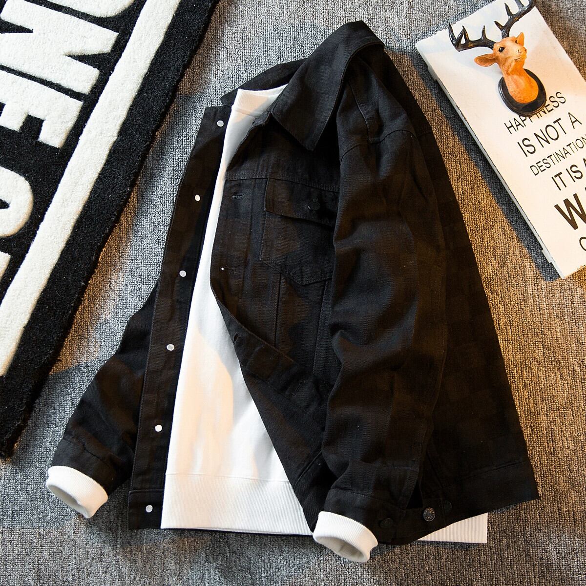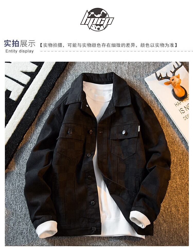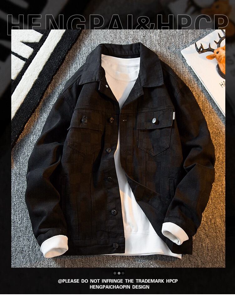 HPCP ダークパターンチェック柄デニムジャケットメンズトレンディなブランドインハイエンドハンサムメンズ市松ジャケットデニムジャケット 3381984080810099
