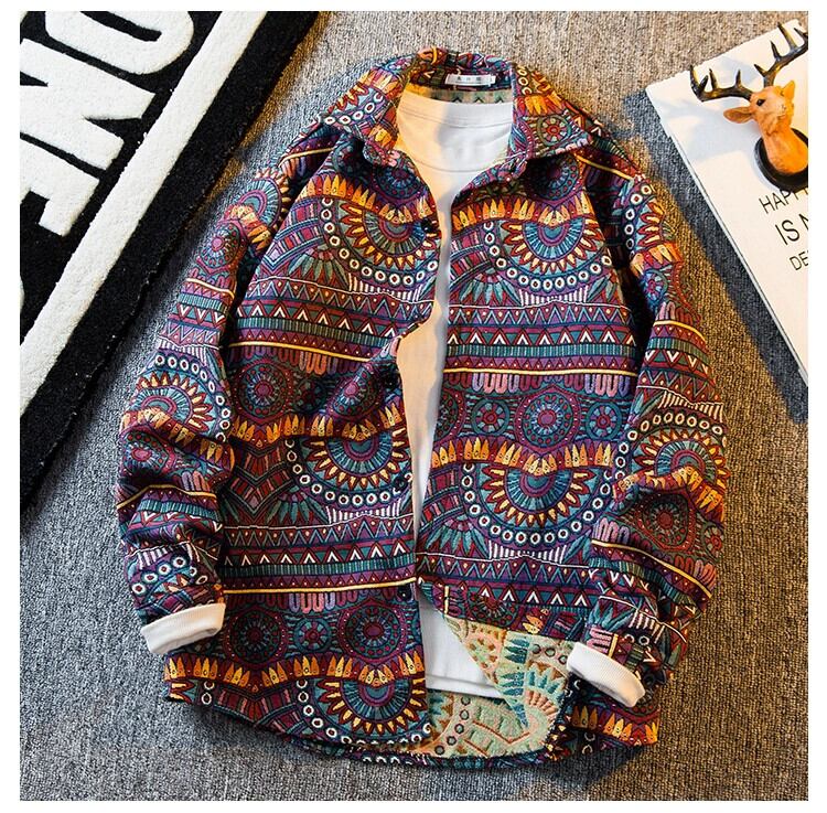 HPCP レトロバロックスタイルシャツメンズ長袖秋のハイエンドファッションブランドメンズカジュアル薄手シャツジャケット ロング オータム 秋物 3381958877543263