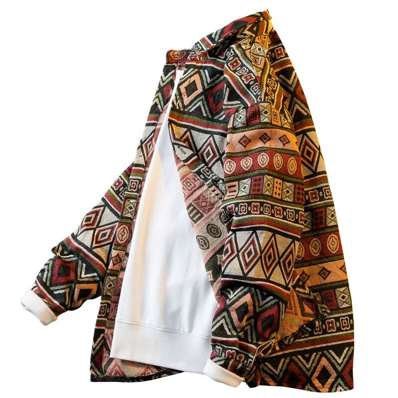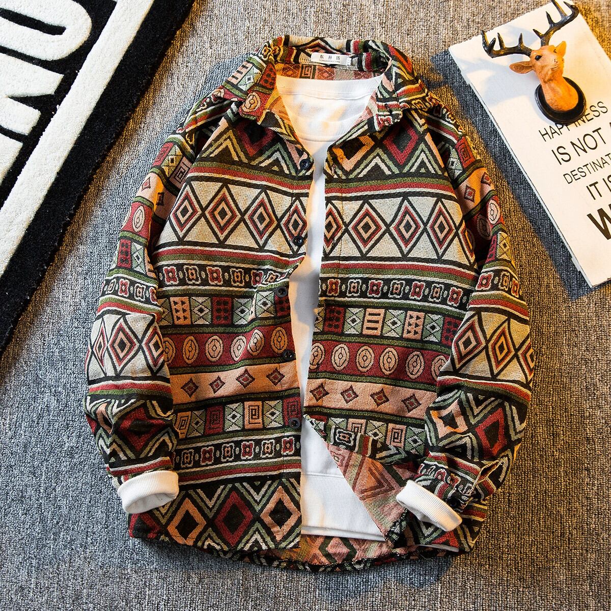 HPCP レトロスプライシングエスニックスタイルシャツメンズ長袖秋のファッションブランドハイエンドメンズカジュアル花柄シャツジャケット ロング オータム 秋物 3381917344106221