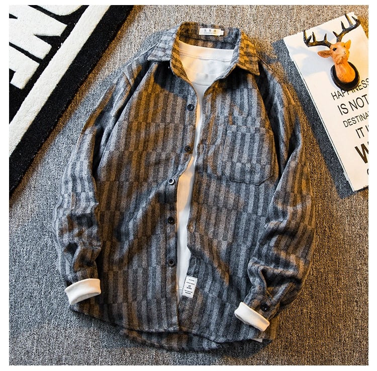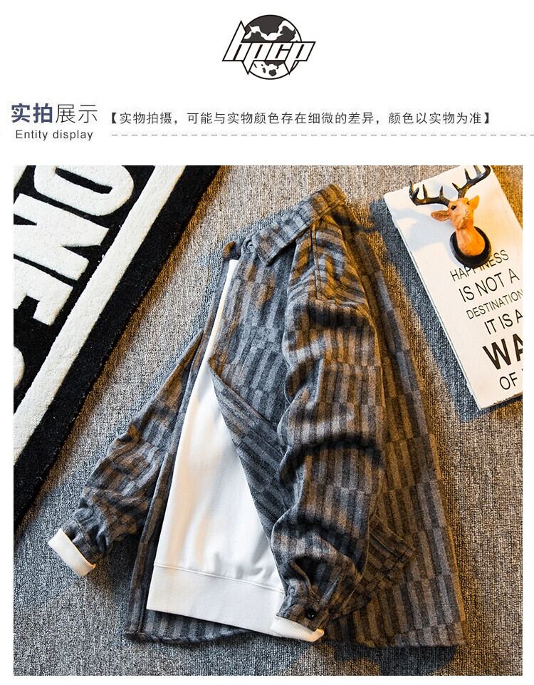 HPCP ストライプシャツメンズ長袖春と秋のトレンディなブランドハイエンドハンサムレトロウール起毛シャツメンズ ロング スプリング 春物 オータム 秋物 3381931782748640