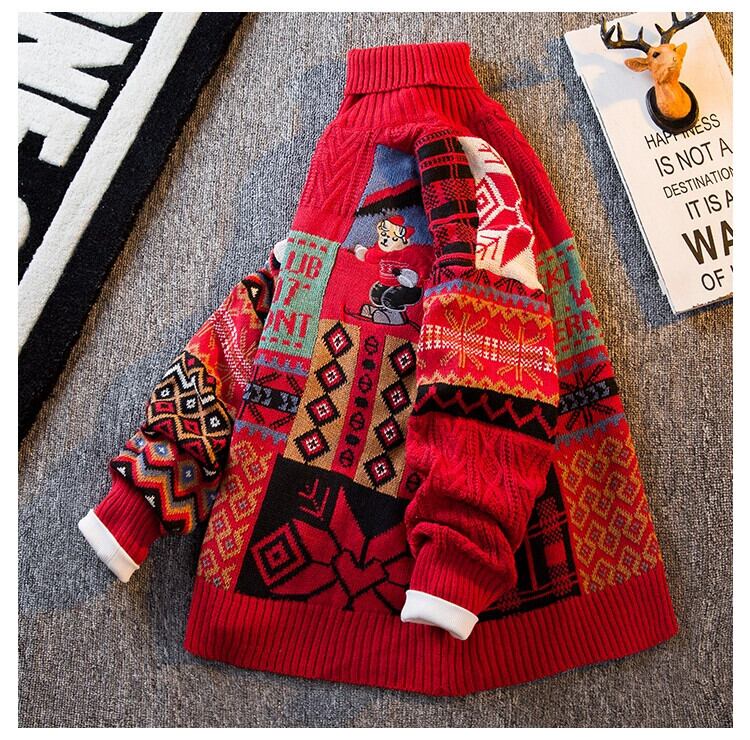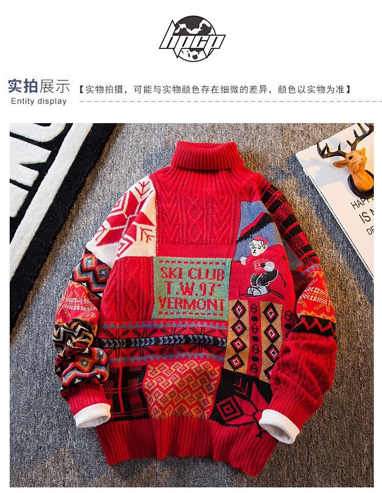 HPCP アメリカのレトロなタートルネックセーターメンズ秋と冬のトレンディなブランド刺繍クマルーズカップルセータージャケット男性 レッド オータム 秋物 ウィンター 冬物 3381956452190148