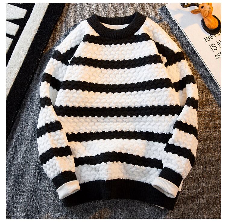 HPCP ツイストストライプセーターメンズラウンドネックトレンディブランドセーター秋と冬ルーズ怠惰なスタイル肥厚セータージャケット オータム 秋物 ウィンター 冬物 Oネック 3381982386467215