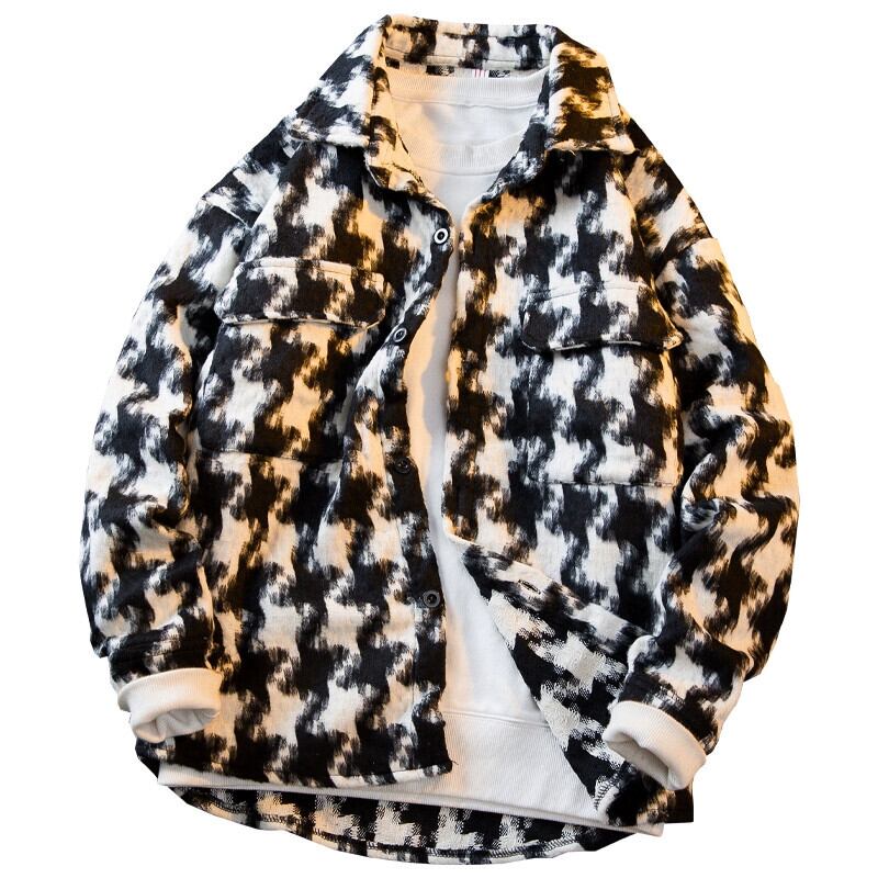 HPCP 千鳥格子ウールジャケットメンズ冬肥厚トレンディブランド小さな香りスタイルルーズカジュアルウールウールジャケット男性 ウィンター 冬物 3381938765326589