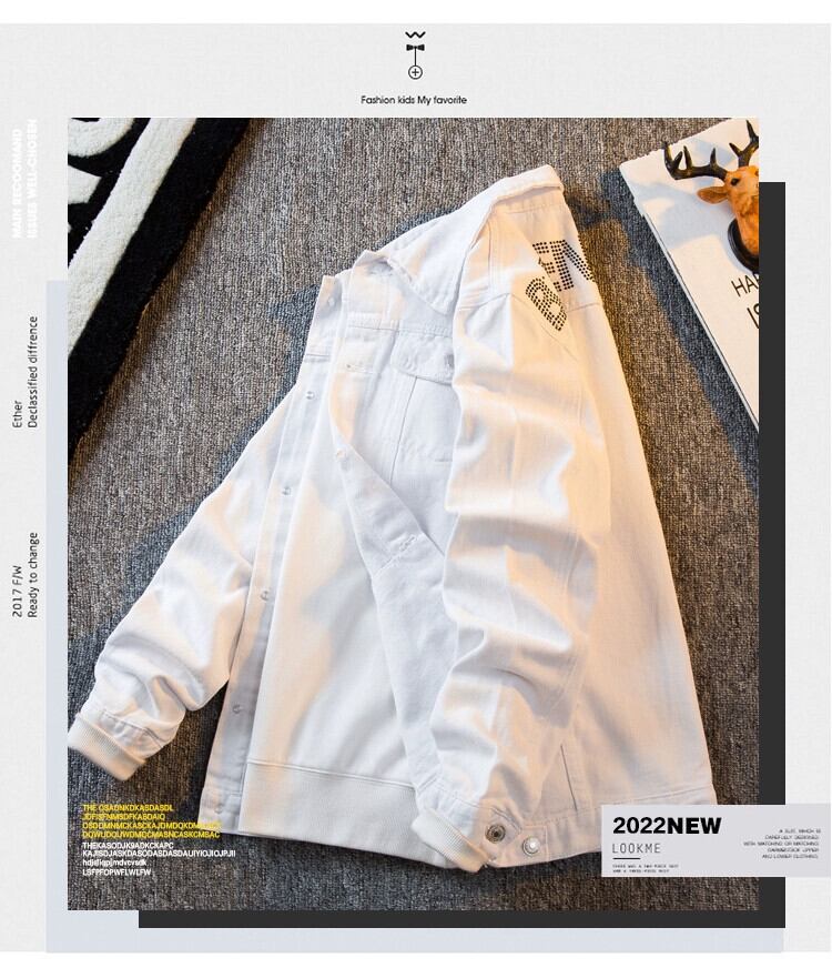 HPCP ダイヤモンド文字トレンディなブランドデニムジャケットメンズ春と秋のインターネットセレブと同じスタイルのメンズハンサムカジュアルジャケットトップ スプリング 春物 オータム 秋物 3381940477061427