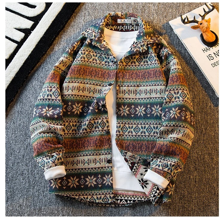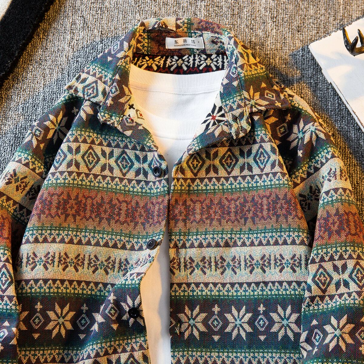HPCP レトロエスニックスタイル長袖シャツメンズ秋ファッションブランドハイエンドバロックカップルシャツカジュアルジャケット ロング オータム 秋物 3381925109155763