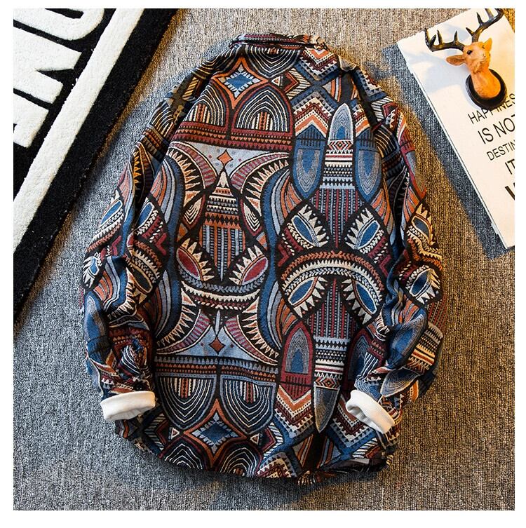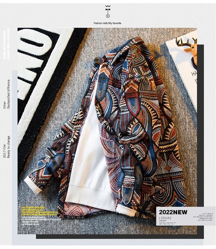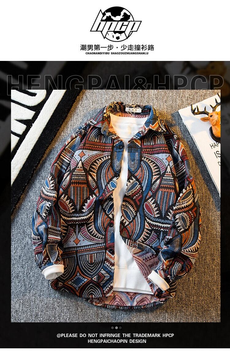 HPCP レトロエスニックスタイルジャカード長袖シャツメンズ秋のハイエンドトレンディなパーソナライズされたシャツカジュアル薄手のジャケット ロング オータム 秋物 3381982734197935