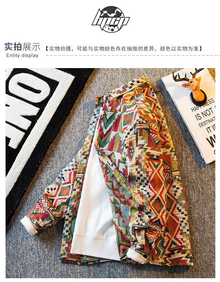 HPCP ヴィンテージレトロエスニックスタイルシャツメンズ長袖 ese トレンディなブランドハイエンドカジュアルシャツ薄手のジャケット ロング ビンテージ 3381914663673858