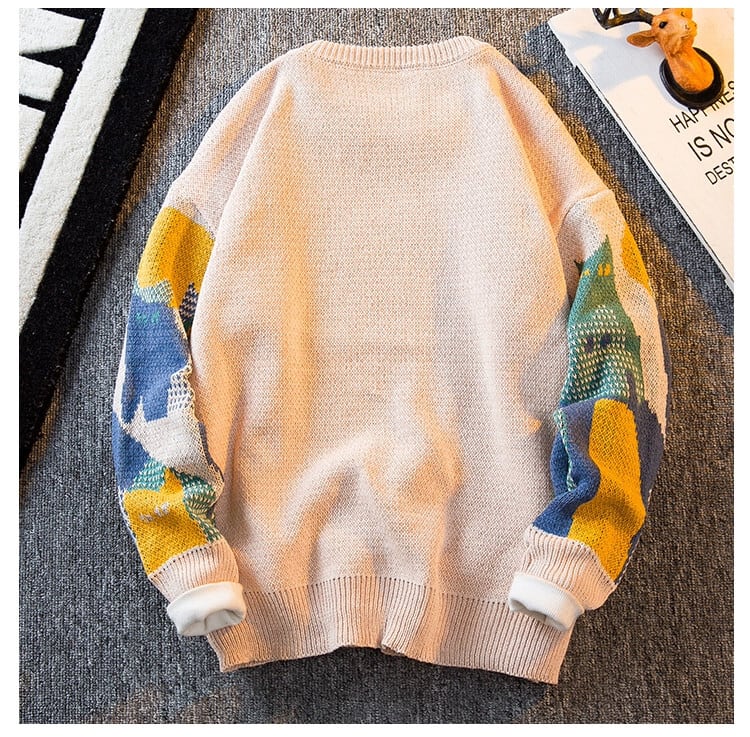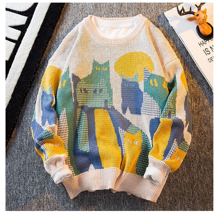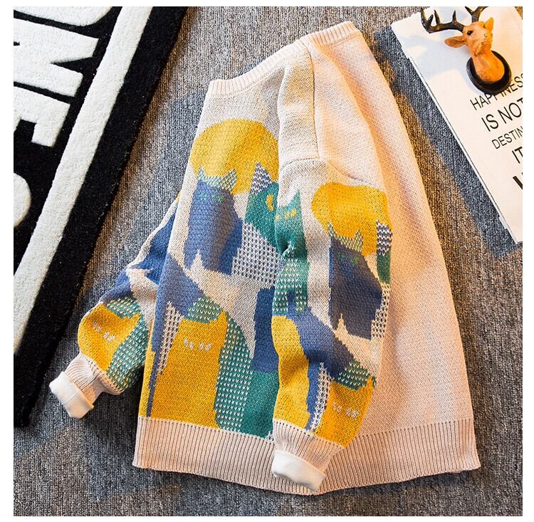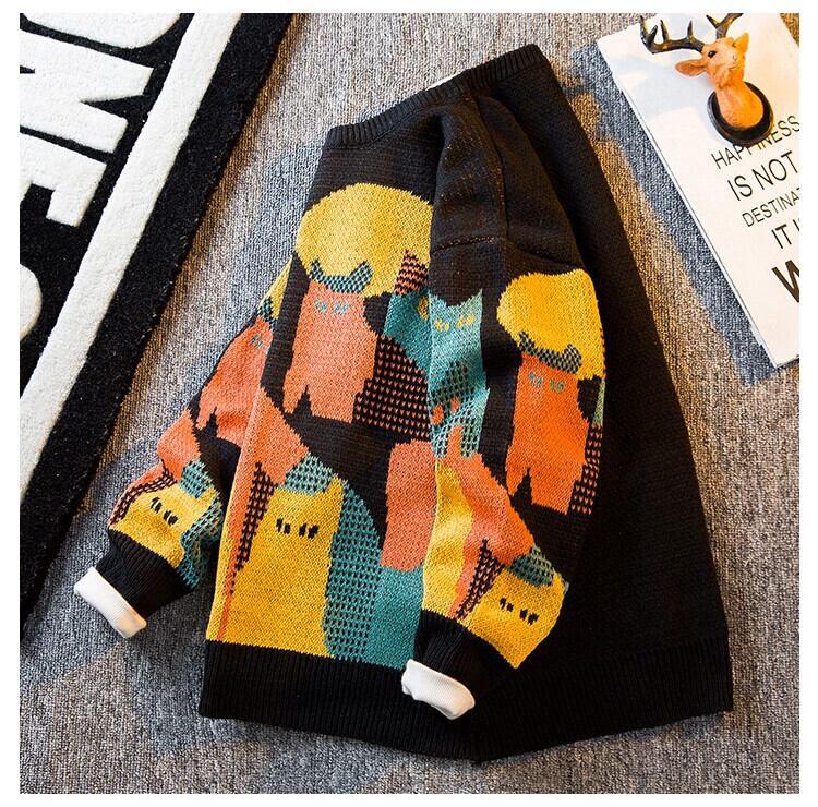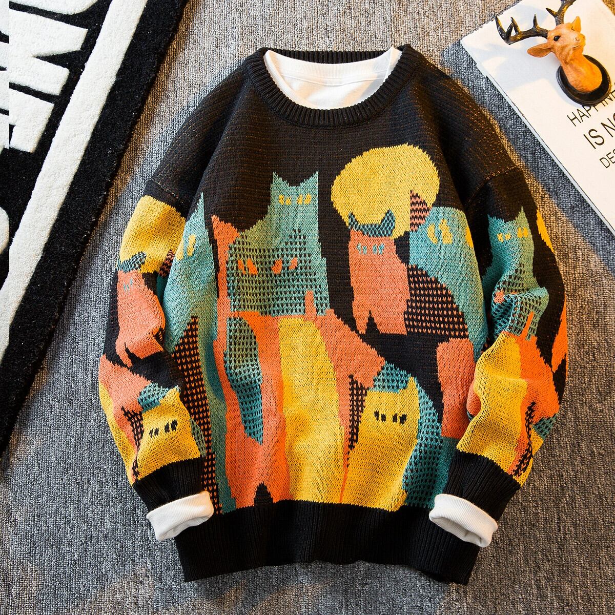 HPCP アメリカンレトロ猫セーターメンズ冬のハイエンド ese トレンディなブランドセーターラウンドネックプルオーバーセーター男性 ウィンター 冬物 Oネック 3381988964633565