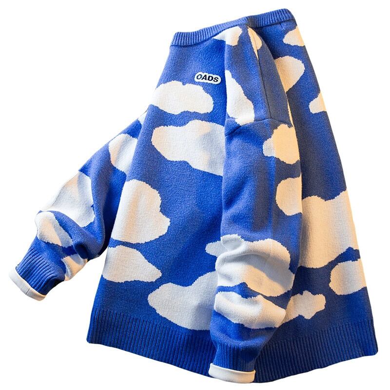 HPCP 青い空と白い雲のデザインニッチセーターメンズ秋冬トレンディブランド怠惰なハイエンド冬のインナーセーター ホワイト ブルー オータム 秋物 ウィンター 冬物 3381948168596156