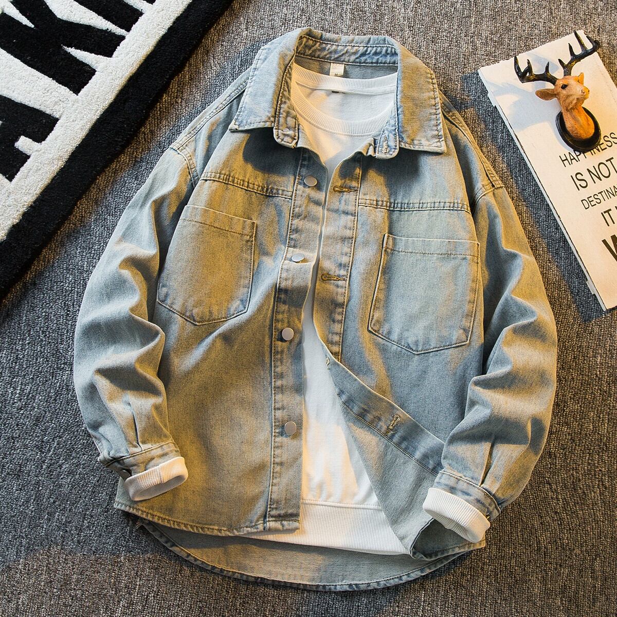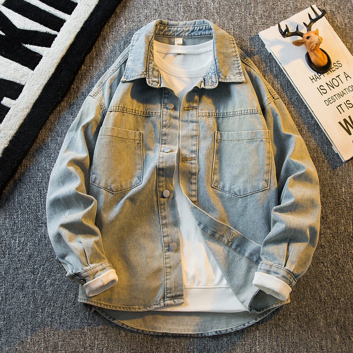 HPCP ese シンプルな厚みのあるデニムシャツジャケットメンズ春と秋のトレンディなブランドメンズハンサムルーズカジュアルジャケット スプリング 春物 オータム 秋物 3381928224215025