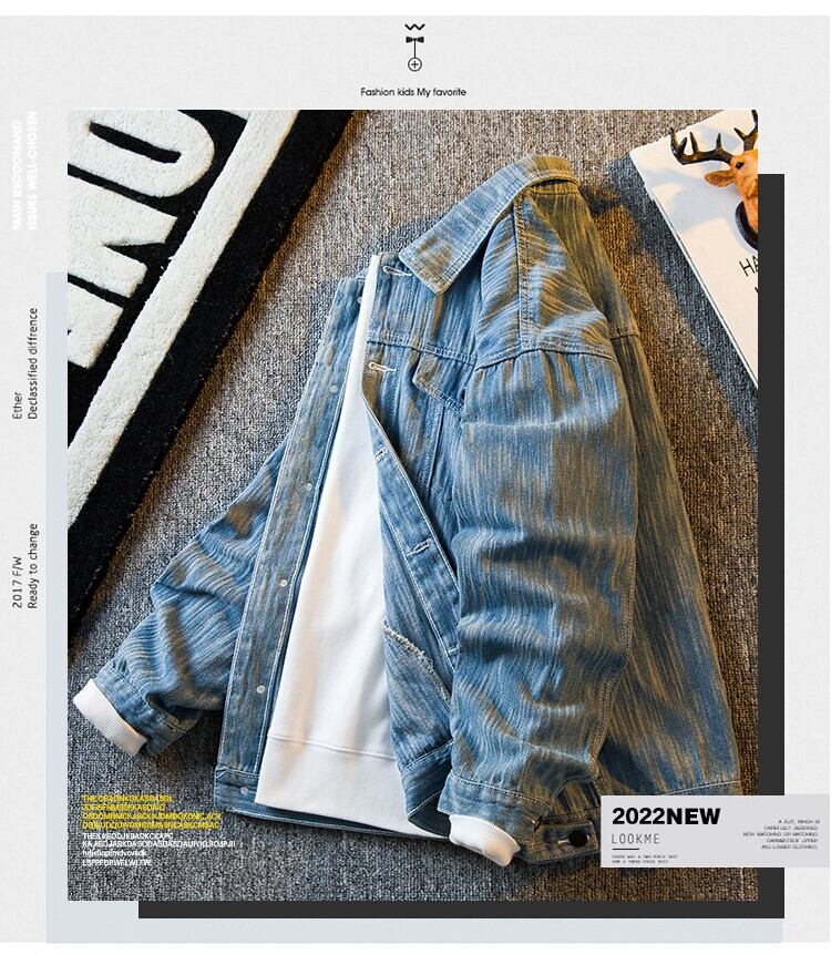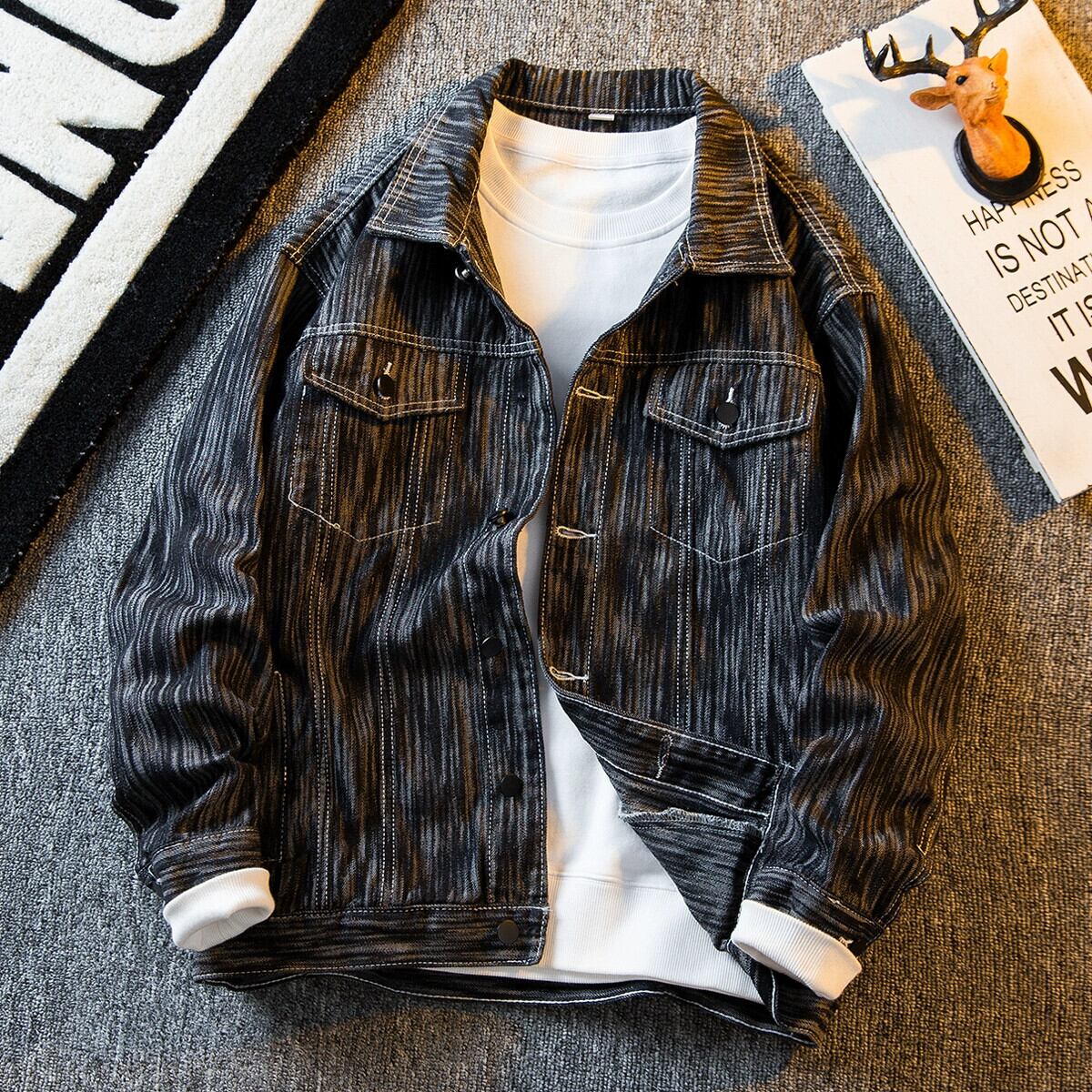 HPCP ヘビーストライプ小香りデニムジャケットメンズデザインセンスのハイエンドルーズハンサムトレンディブランドカジュアルジャケット 3381985664365993