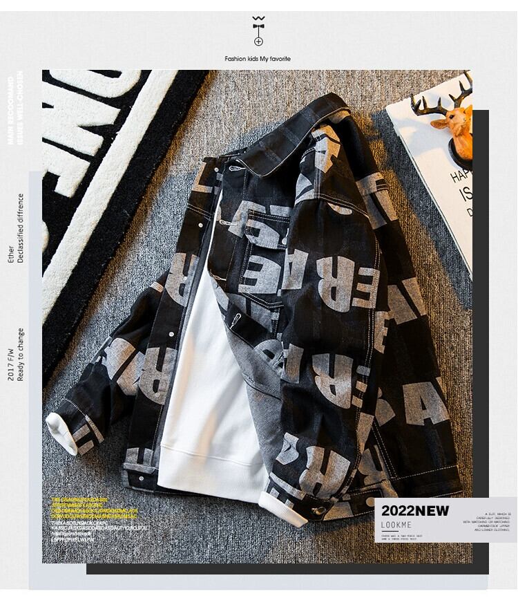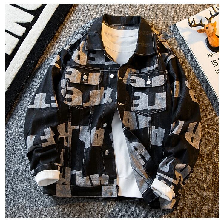 HPCP アメリカンスタイルフライドストリートフルプリントデニムジャケットメンズ春秋カジュアルイントレンディブランドルーズハイストリートジャケット スプリング 春物 オータム 秋物 3381961937071133