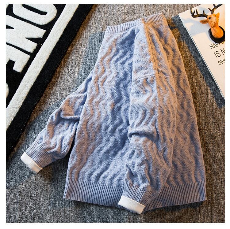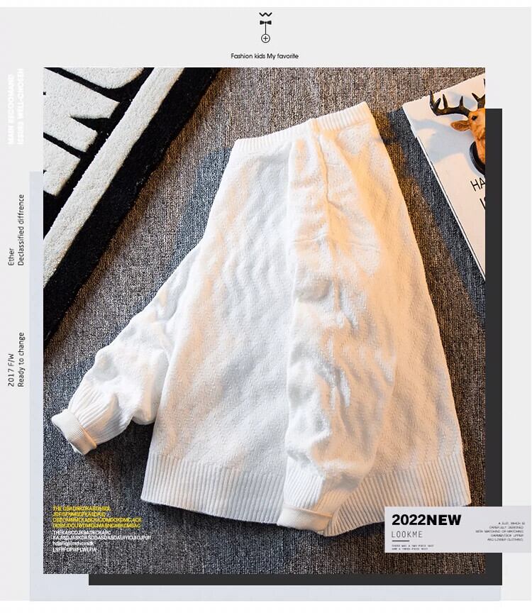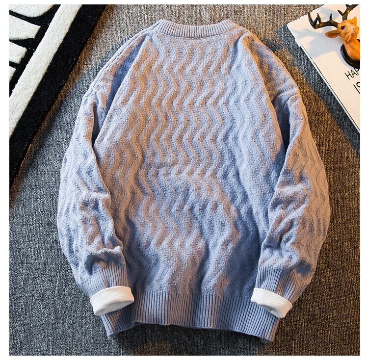 HPCP 不規則なストライプのセーターメンズトレンディな冬ラウンドネックプルオーバーセーター怠惰なハイエンドルーズセーター ウィンター 冬物 Oネック 3381935769681429