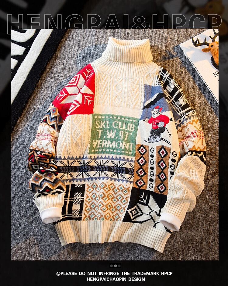 HPCP アメリカの怠惰なスタイルのタートルネックセーターメンズ冬肥厚ルーズハイエンドクリスマスカップルニットセータートレンド ウィンター 冬物 3381916486459396