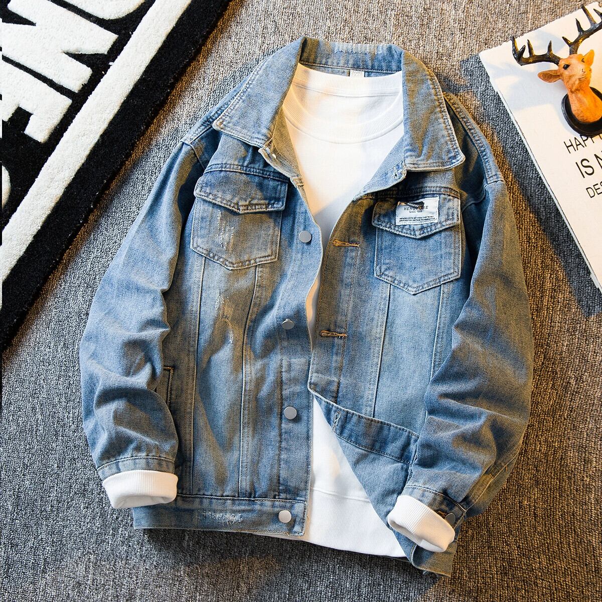 HPCP アメリカ香港スタイルのデニムジャケットメンズトレンディなブランド春秋カジュアル万能トップスハンサムボーイズルーズジャケット スプリング 春物 オータム 秋物 3381914891181964
