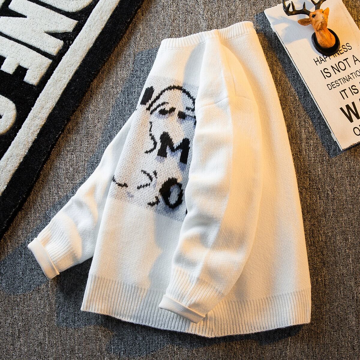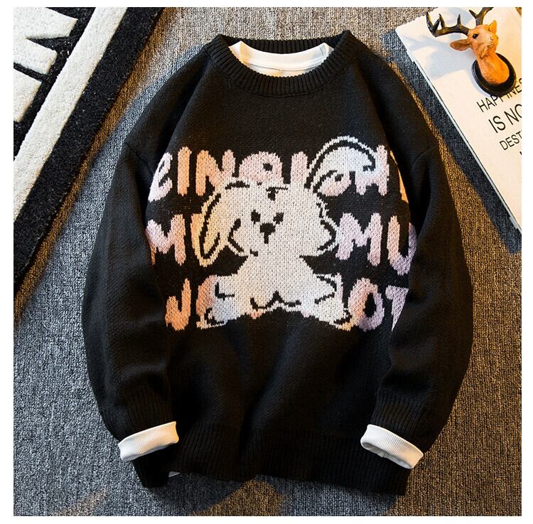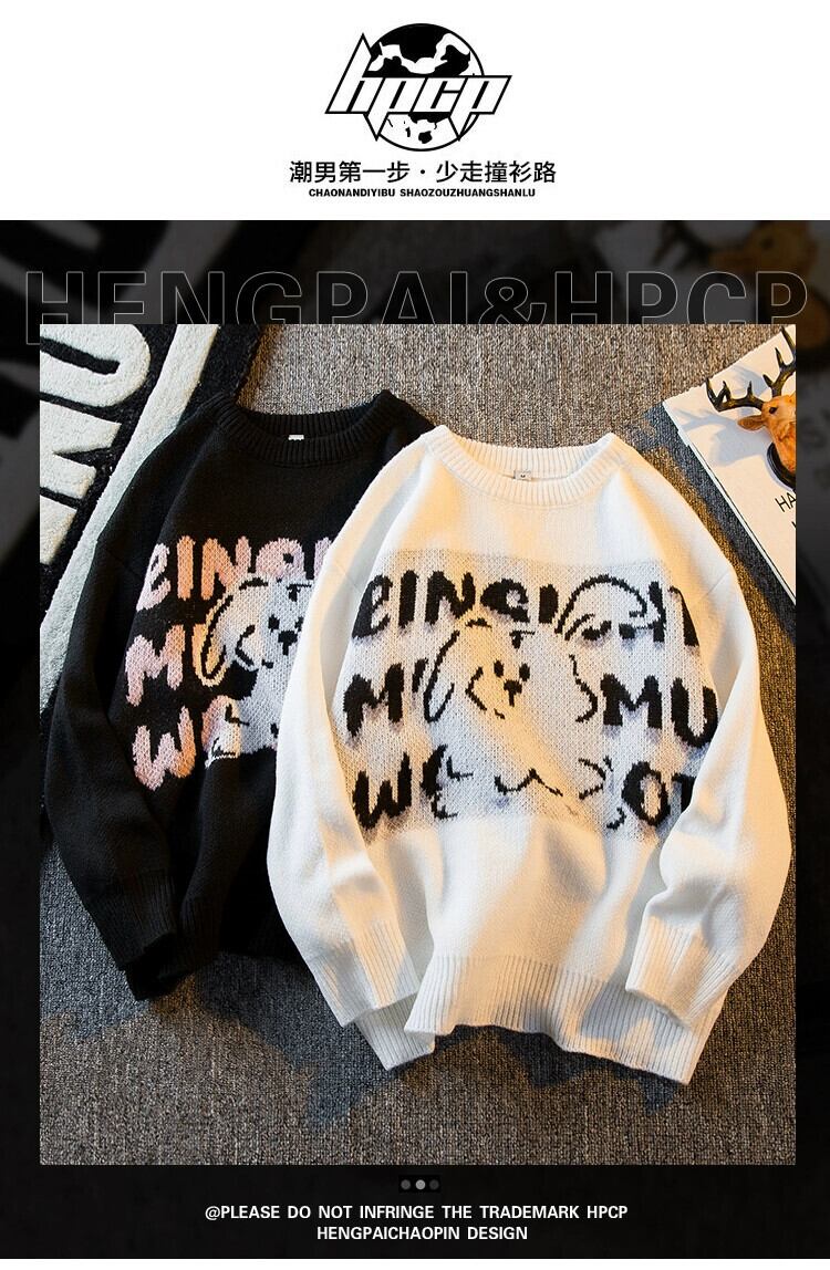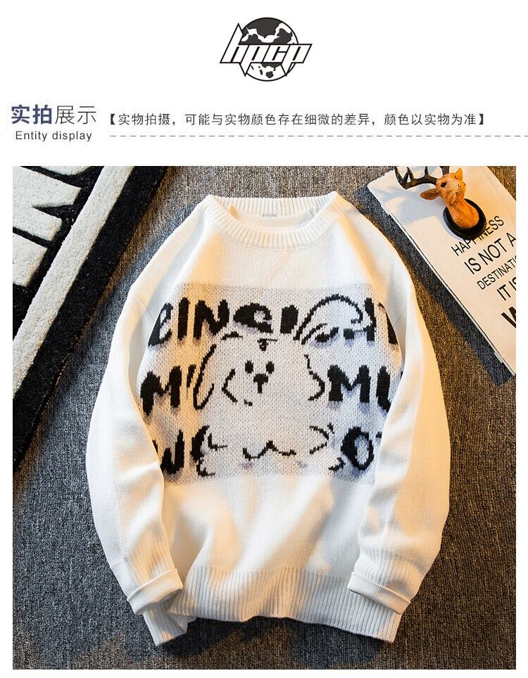 HPCP 国家トレンドデザインニッチウサギラウンドネックセーターメンズ秋と冬のオーバーサイズレトロカップルセーター男性 オータム 秋物 ウィンター 冬物 Oネック 3381985936635730