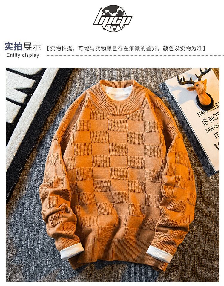 HPCP アメリカの厚い格子縞のセーターメンズ秋と冬 ese レトロトレンディなブランドメンズカジュアルラウンドネックセータージャケット オータム 秋物 ウィンター 冬物 Oネック 3381915750480534