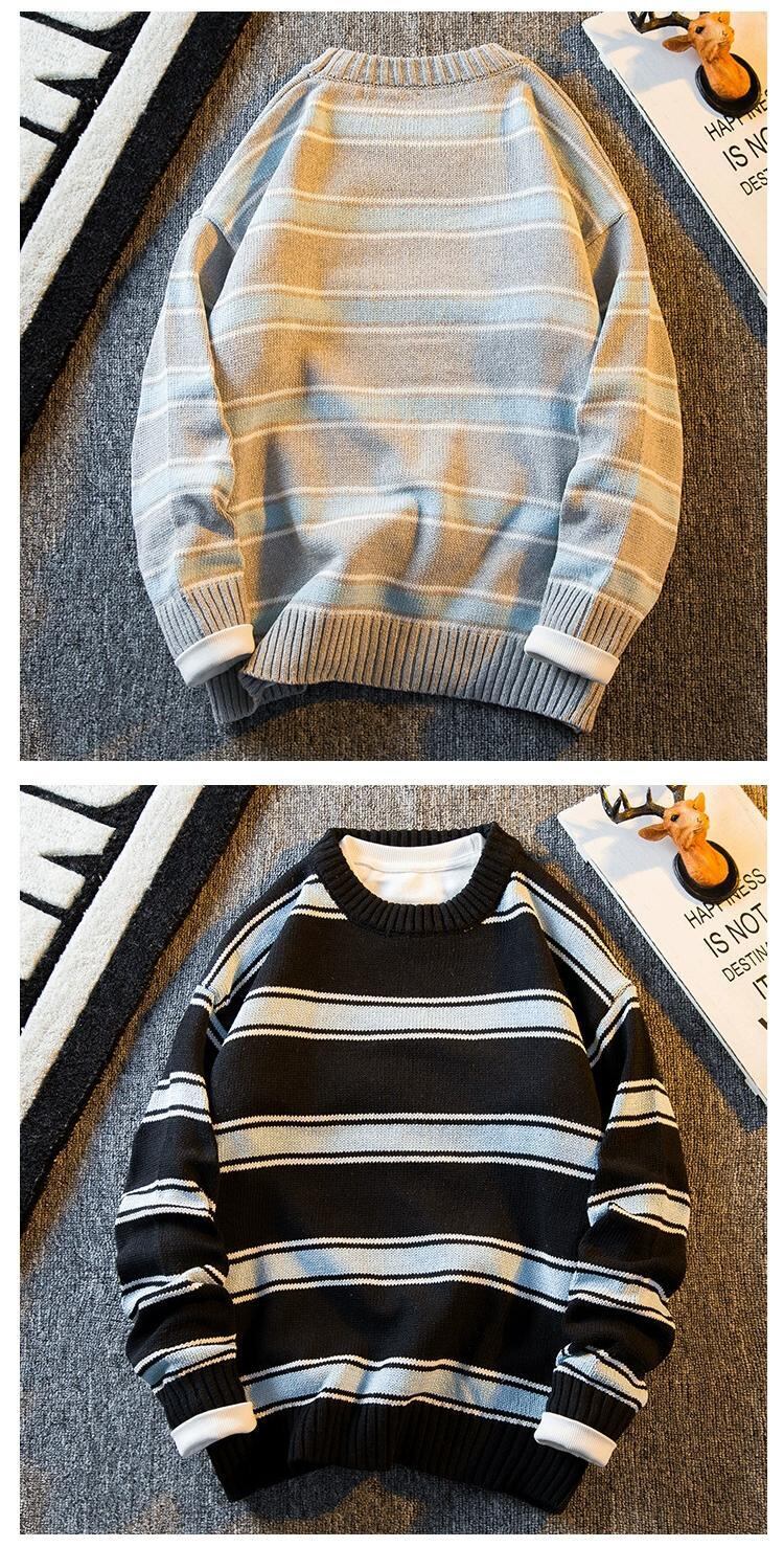 HPCP ese 薄いストライプクルーネックセーターメンズトレンディなブランドレトロ怠惰なハイエンドメンズルーズニットセーター男性 3381946604528428