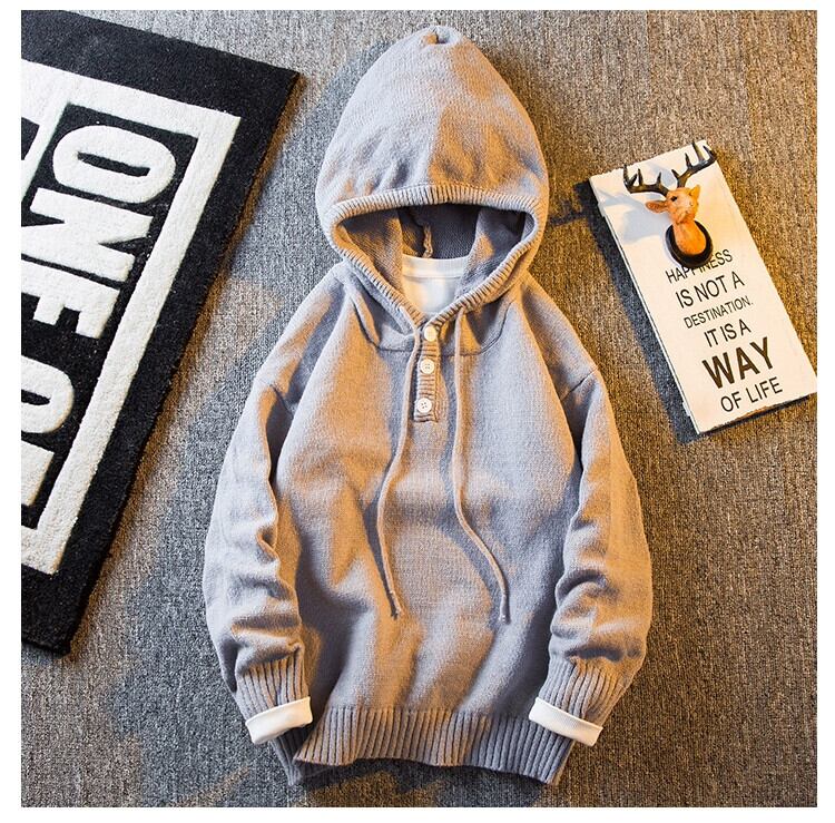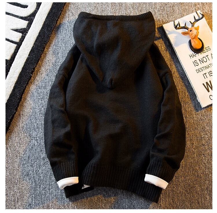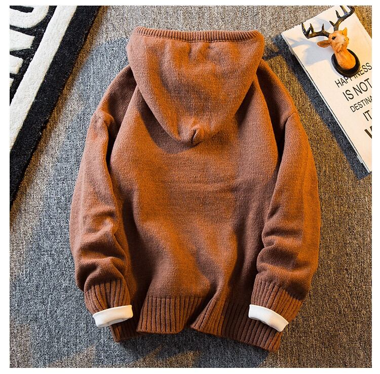 HPCP ヘビーウェイト肥厚怠惰なスタイルのボタンフード付きビッグハットカーディガンセーターメンズレトロルーズニットセータージャケット 帽子 3381910253141338