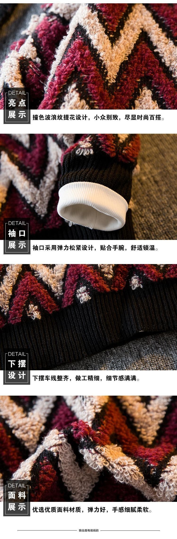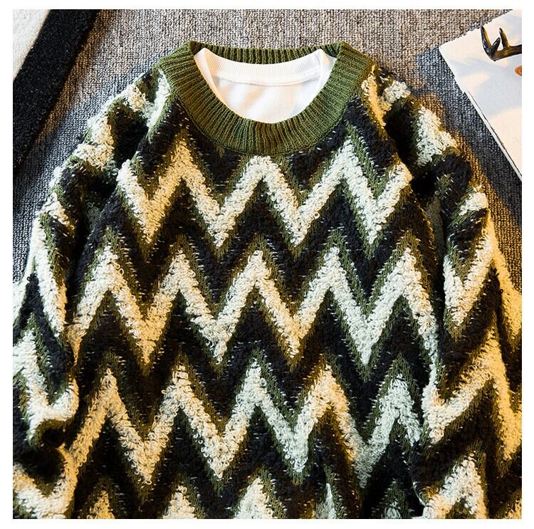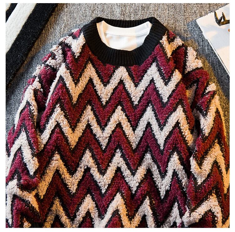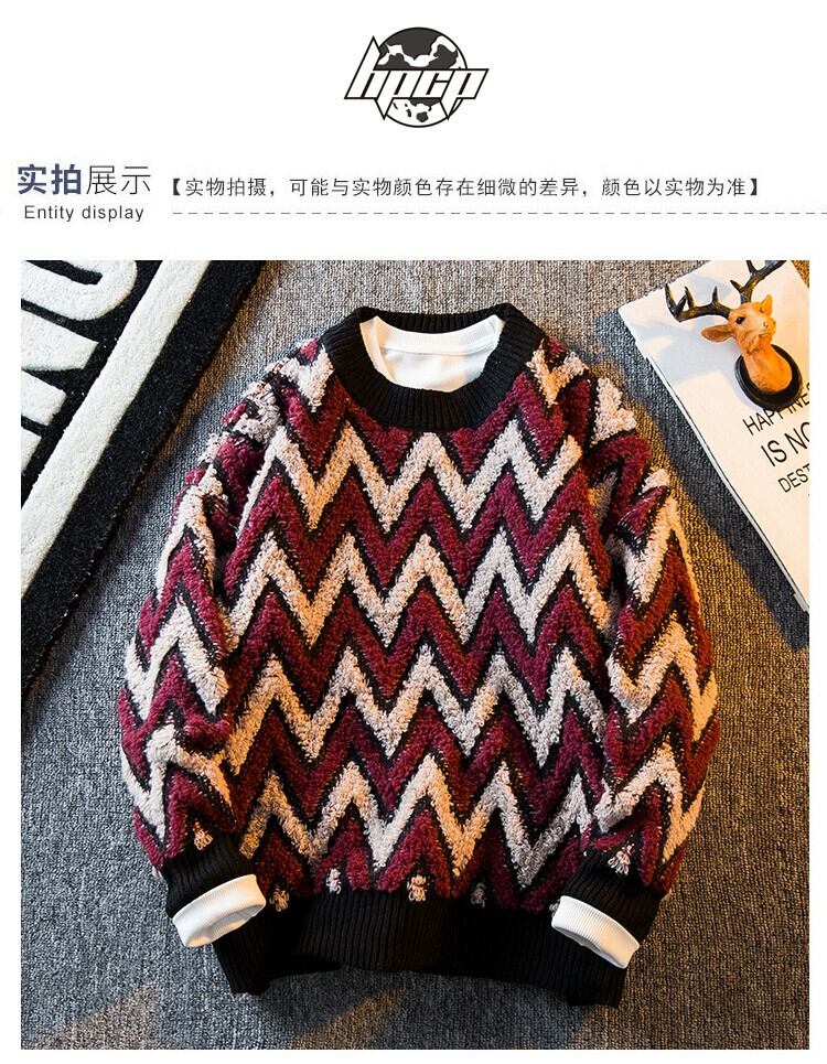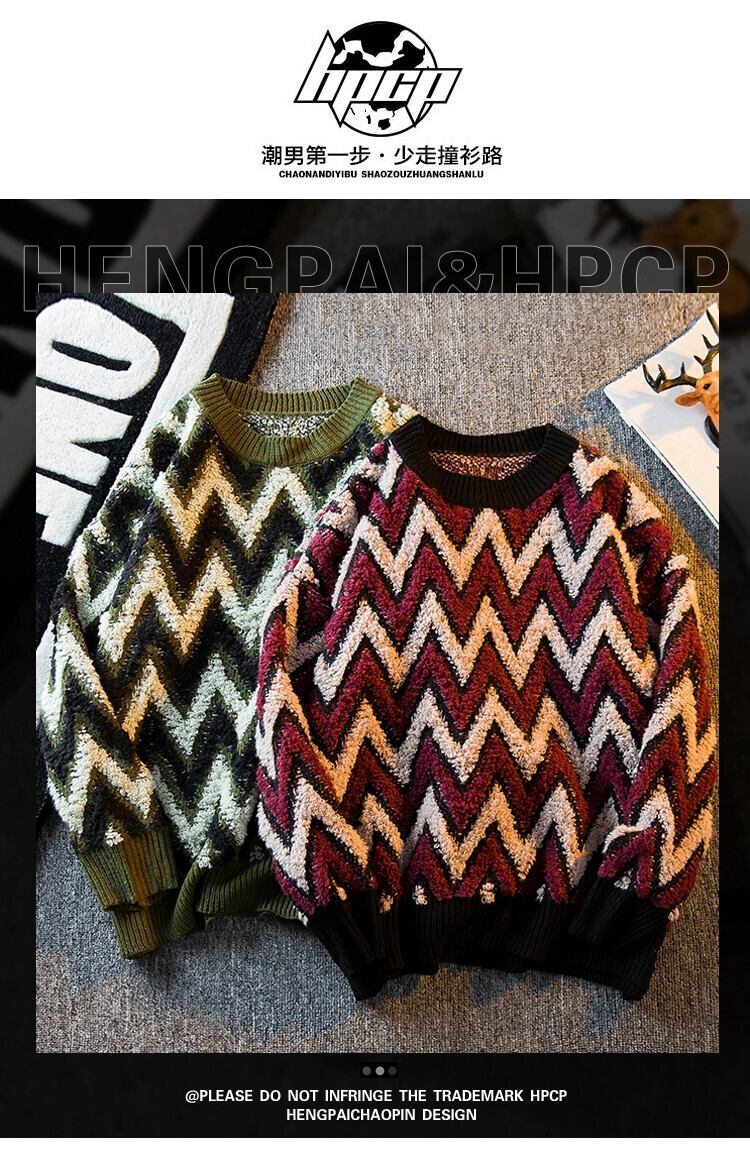 HPCP ese 不規則なストライプのセーター男性冬のレトロな怠惰なハイエンドのハンサムなラウンドネック肥厚セーター ウィンター 冬物 Oネック 3381980426619371