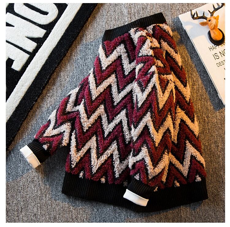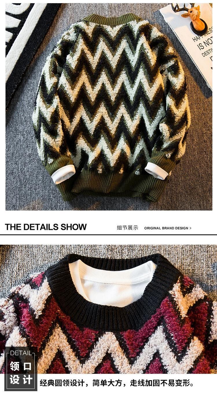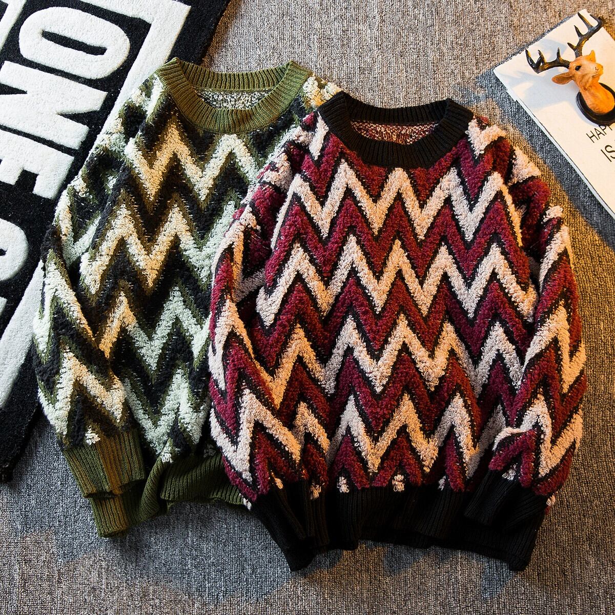 HPCP ese 不規則なストライプのセーター男性冬のレトロな怠惰なハイエンドのハンサムなラウンドネック肥厚セーター ウィンター 冬物 Oネック 3381980426619371