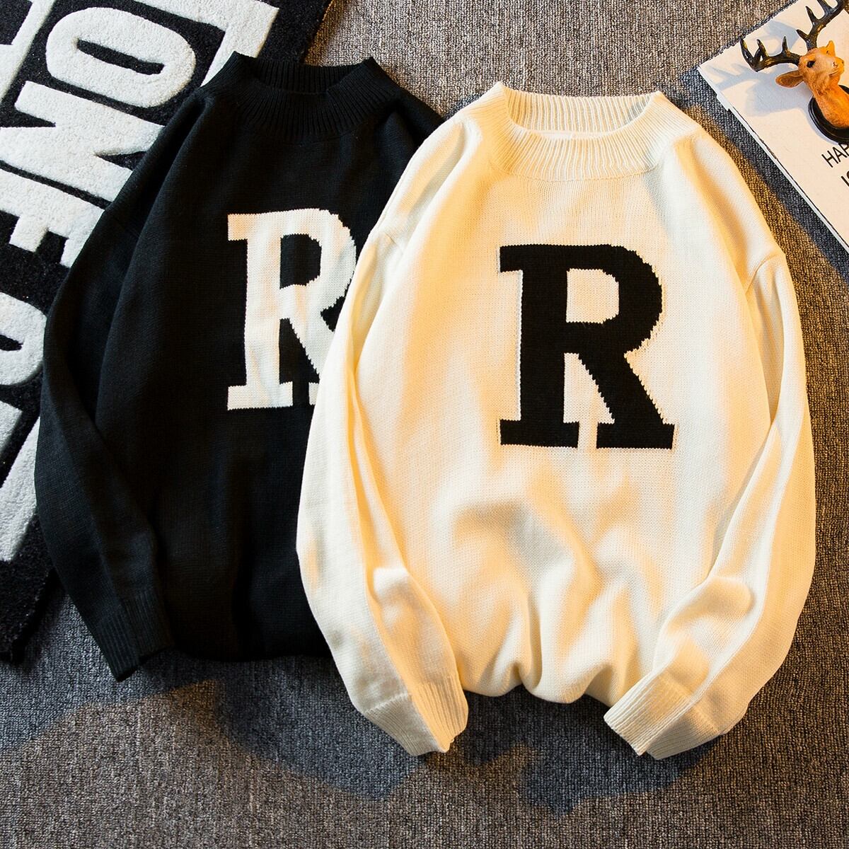 HPCP 文字 R セーターメンズ冬肥厚トレンディブランド怠惰な高品質ルーズインナー暖かいラウンドネックセーター ウィンター 冬物 Oネック 3381998316169467