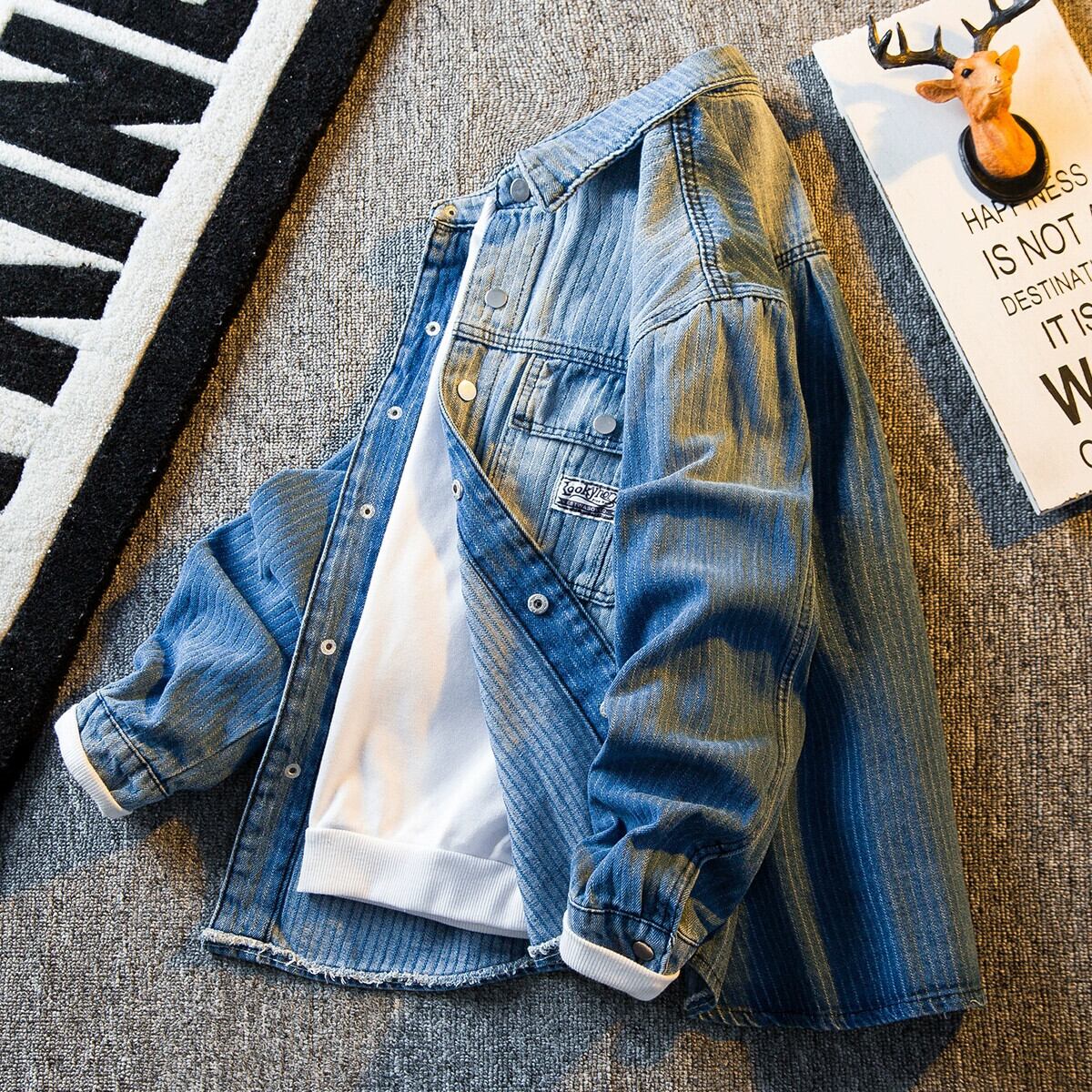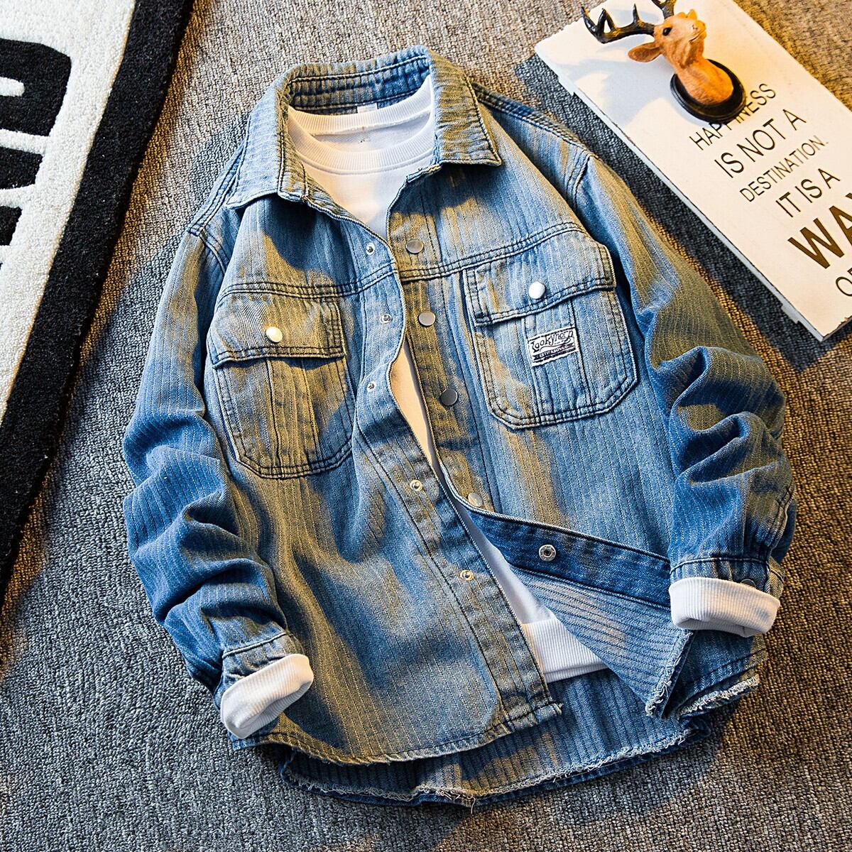 HPCP グラデーションストライプデニムジャケットメンズ春と秋の ese レトロなワークウェアスタイルのトレンディなカジュアルシャツジャケット スプリング 春物 オータム 秋物 338199112902410