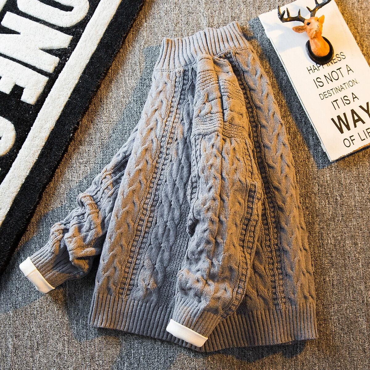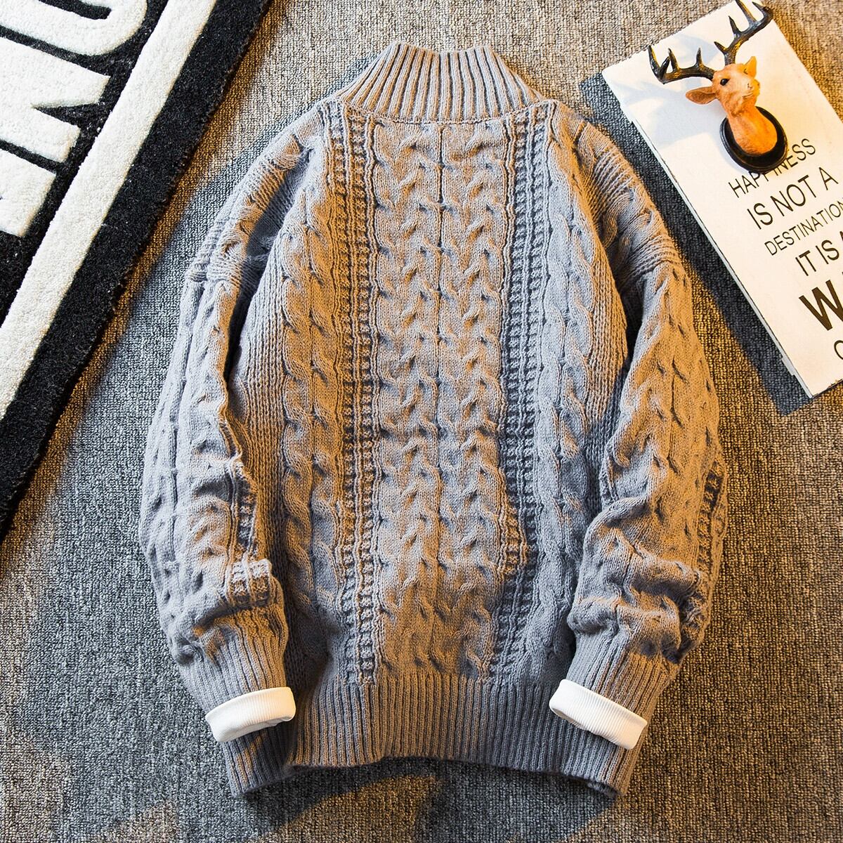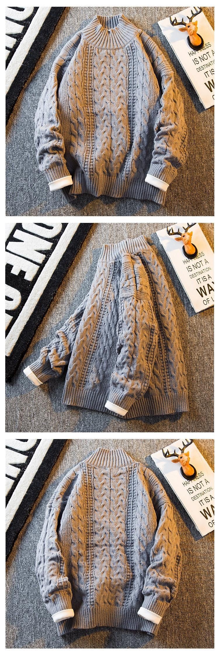 HPCP ハーフタートルネックセーターメンズ冬肥厚トレンディブランド ese レトロ緩い怠惰なスタイルツイストニットセータージャケット ウィンター 冬物 3381982293219990