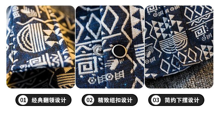 HPCP 幾何学模様レトロシャツメンズ長袖秋トレンディブランドハイエンドハンサムメンズカジュアルシャツジャケット ロング オータム 秋物 3381917119535606