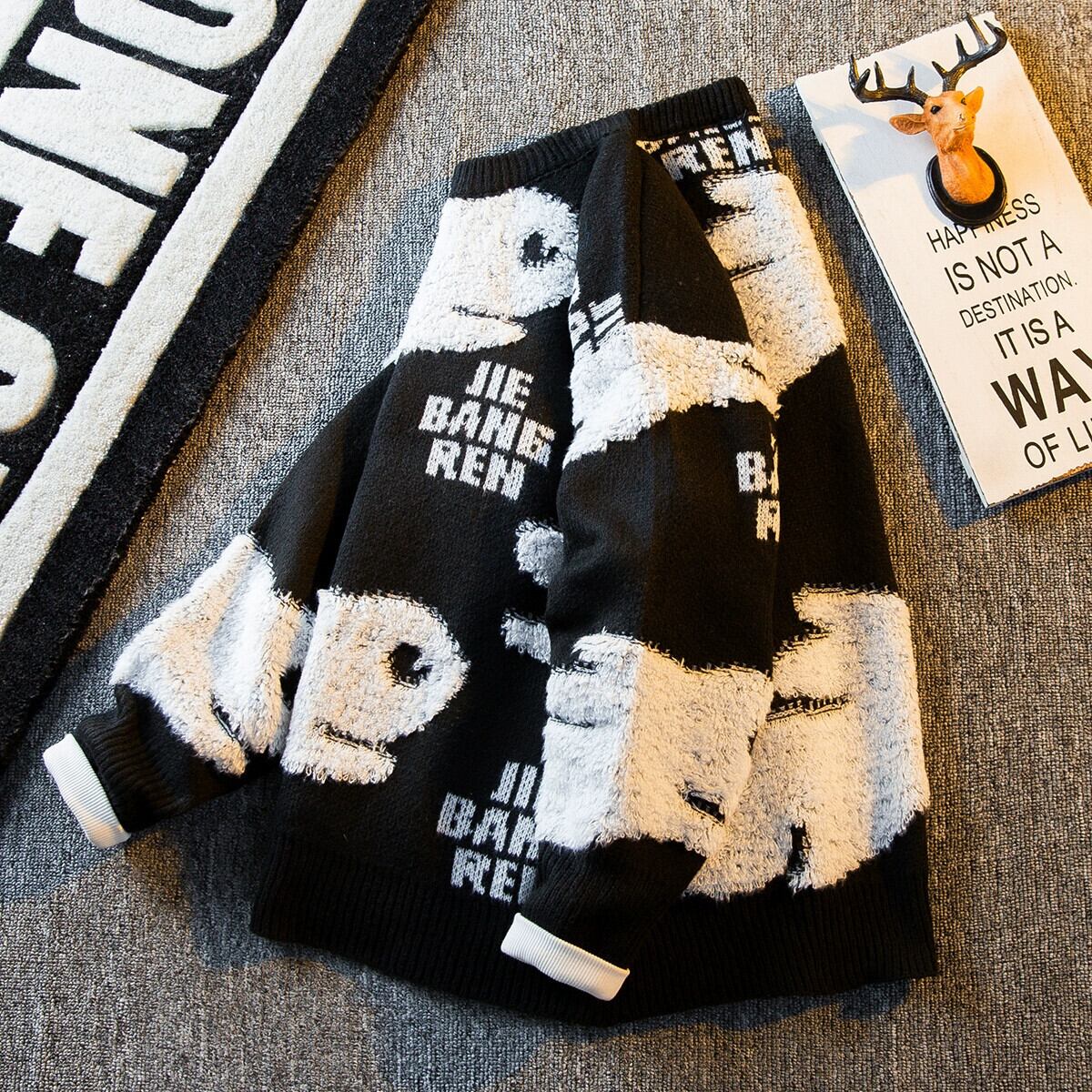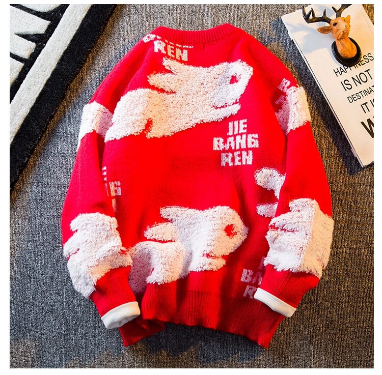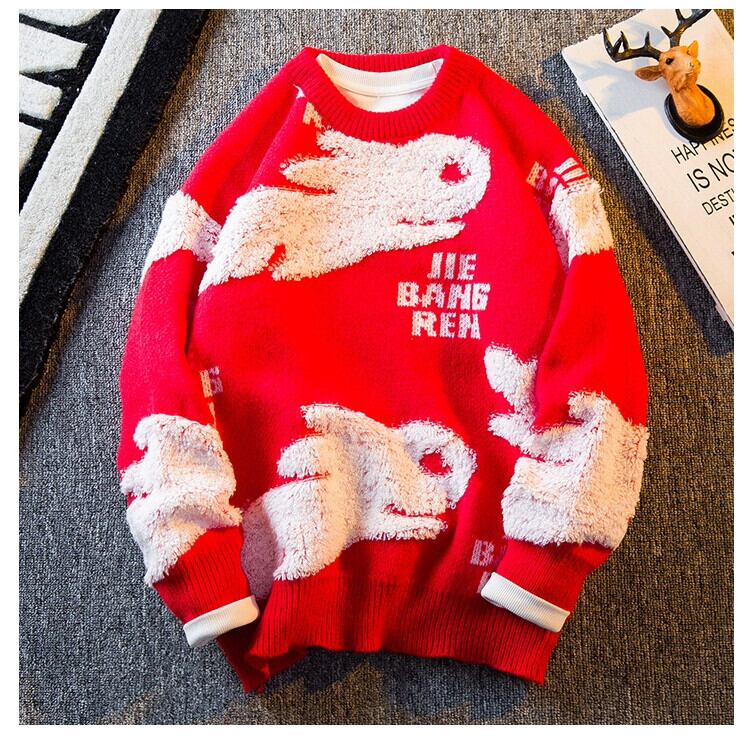 HPCP ウサギ年レッドセーターメンズ冬怠惰なスタイルルーズで多用途な干支年ウサギ年カップルセーター ウィンター 冬物 3381919682103559