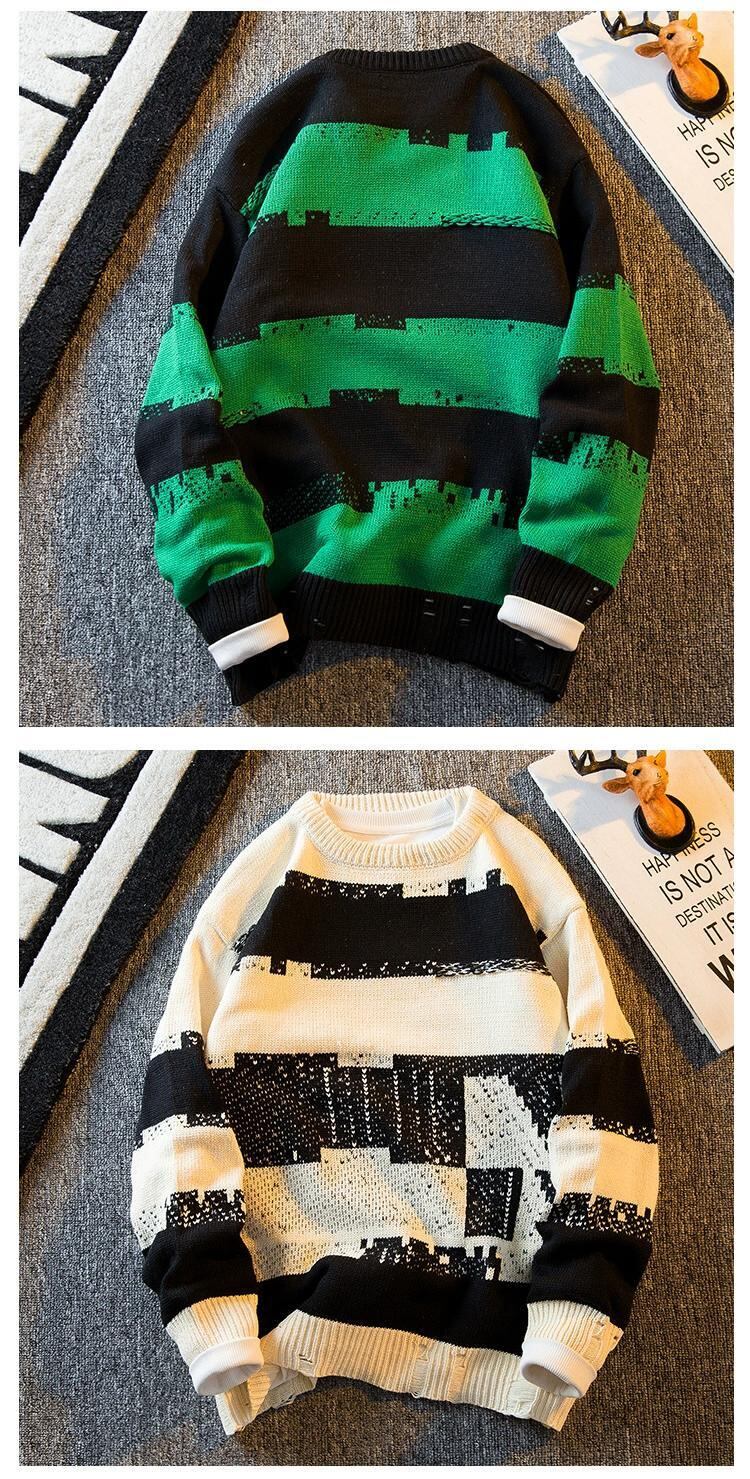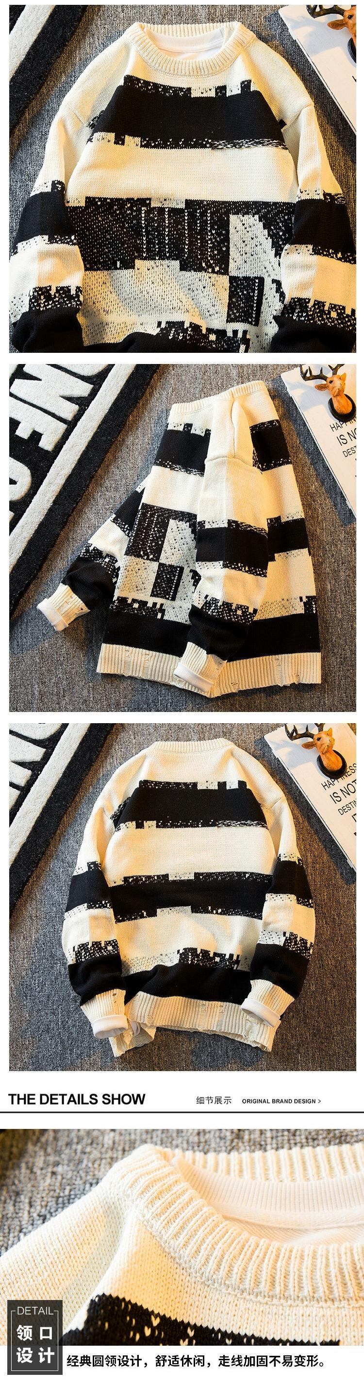 HPCP 全国トレンド不規則な幾何学模様のストライプのセーターメンズ厚くパーソナライズされたトレンディなブランドのハイエンドのレトロなルーズセーター 3381954948419482