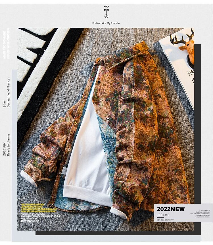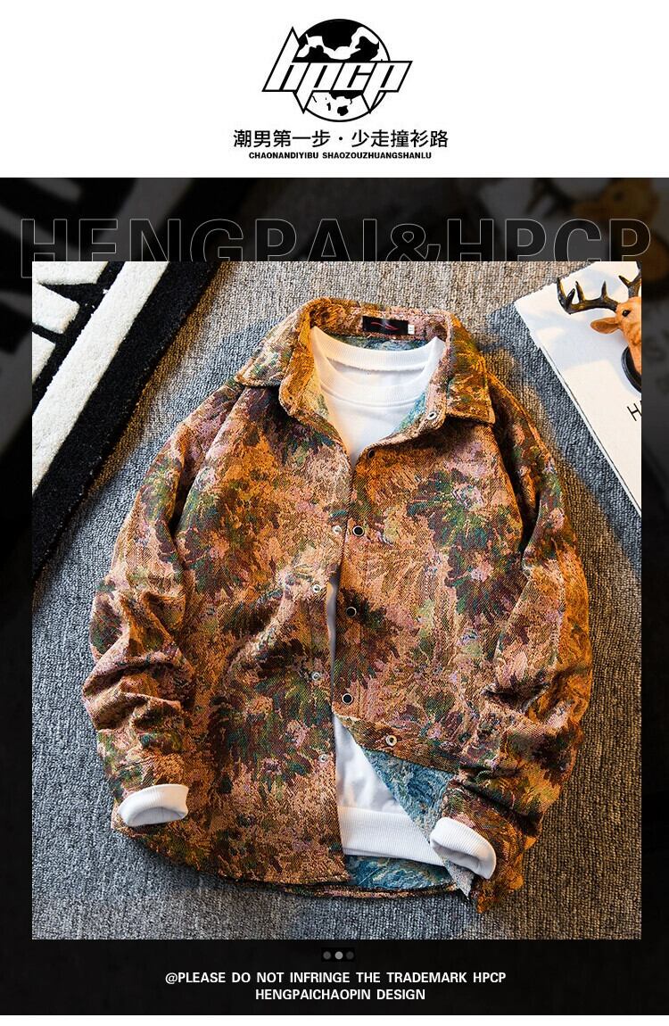 HPCP レトロシャツメンズ長袖春秋デザインニッチハンサムトレンディブランドルーズカジュアルシャツ薄手ジャケット ロング スプリング 春物 オータム 秋物 3381997972375673
