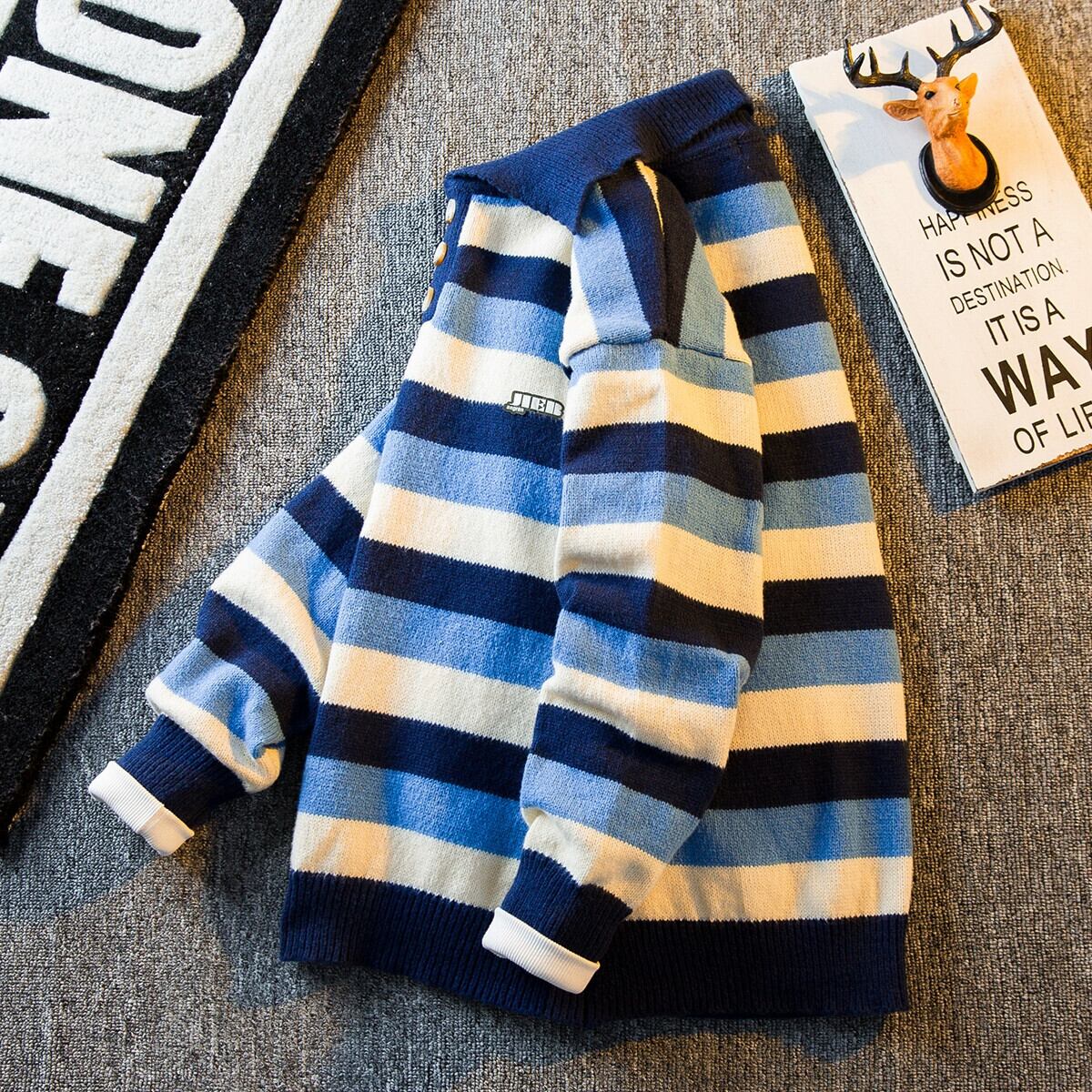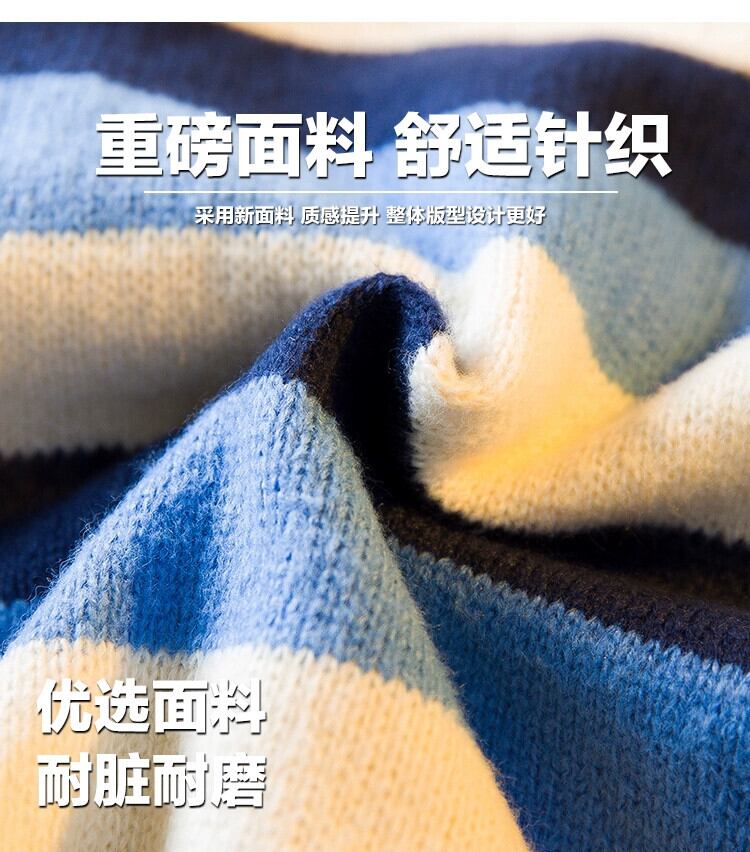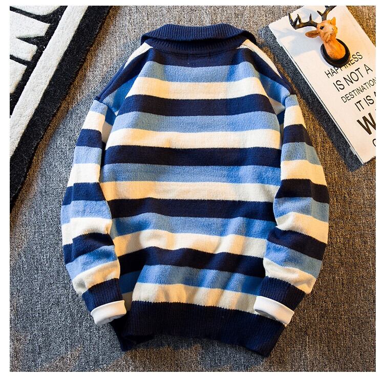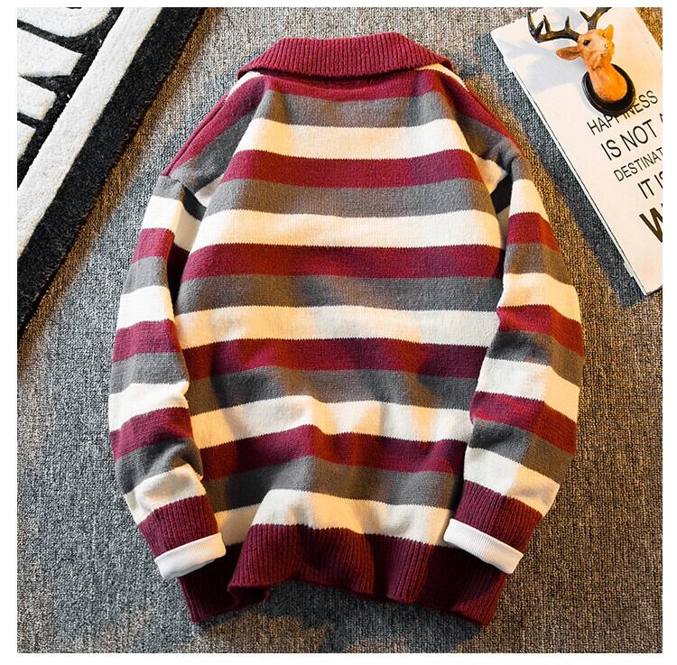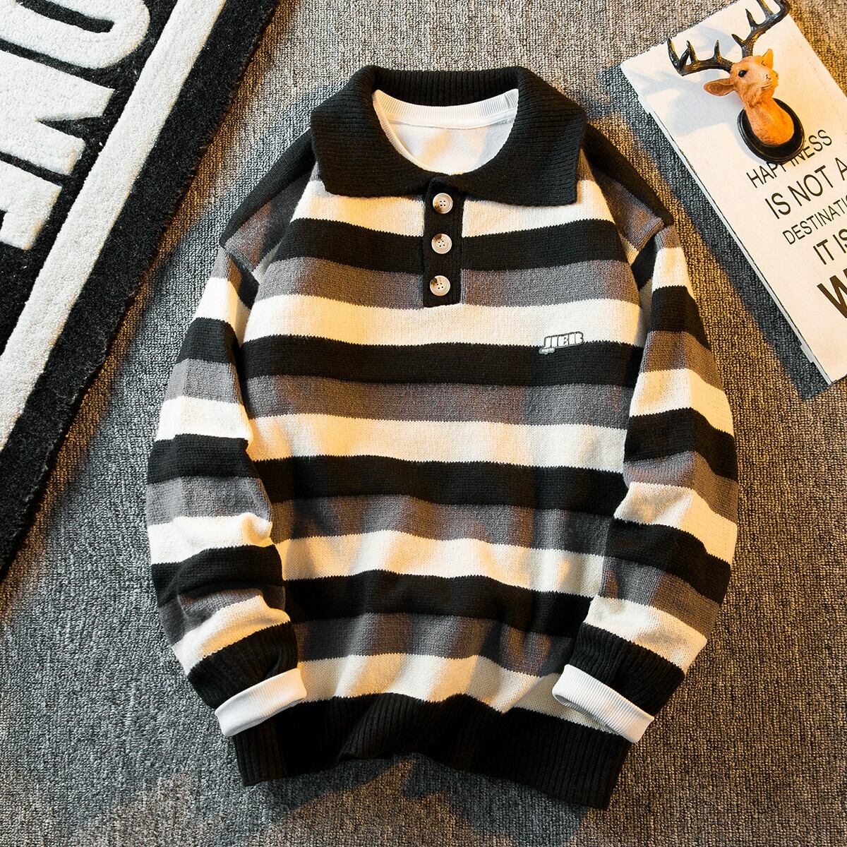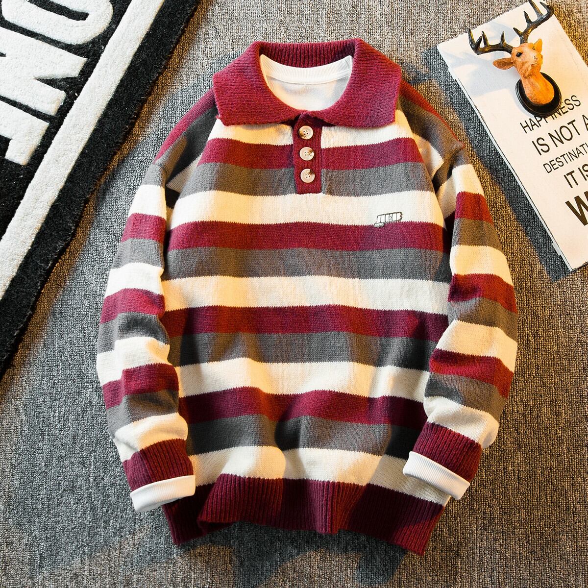 HPCP ストライプカラーブロックポロカラーセーターメンズ秋冬レトロアメリカン怠惰なスタイルルーズボーイズセーターアウター オータム 秋物 ウィンター 冬物 3381959158662341